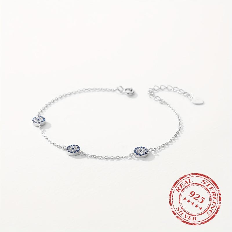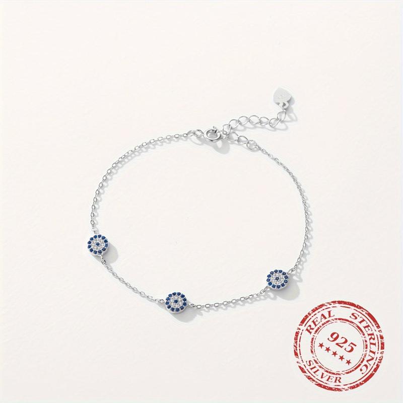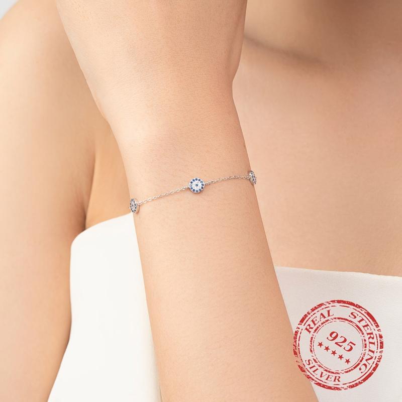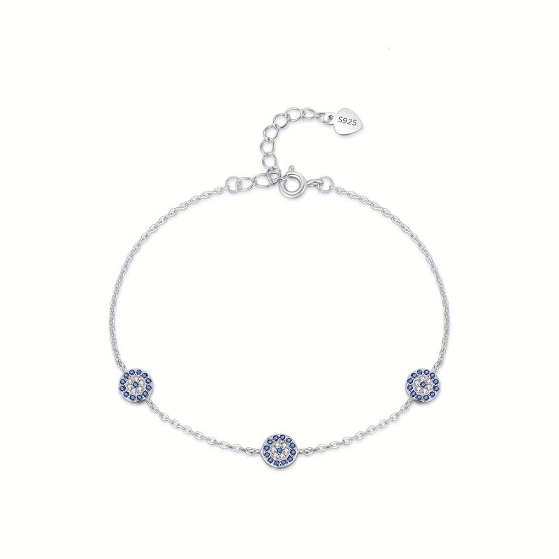 This stunning bracelet is crafted from high quality S925 sterling silver featuring an evil eye design with full pave synthetic cubic zirconia. Perfect for gifting and parties.