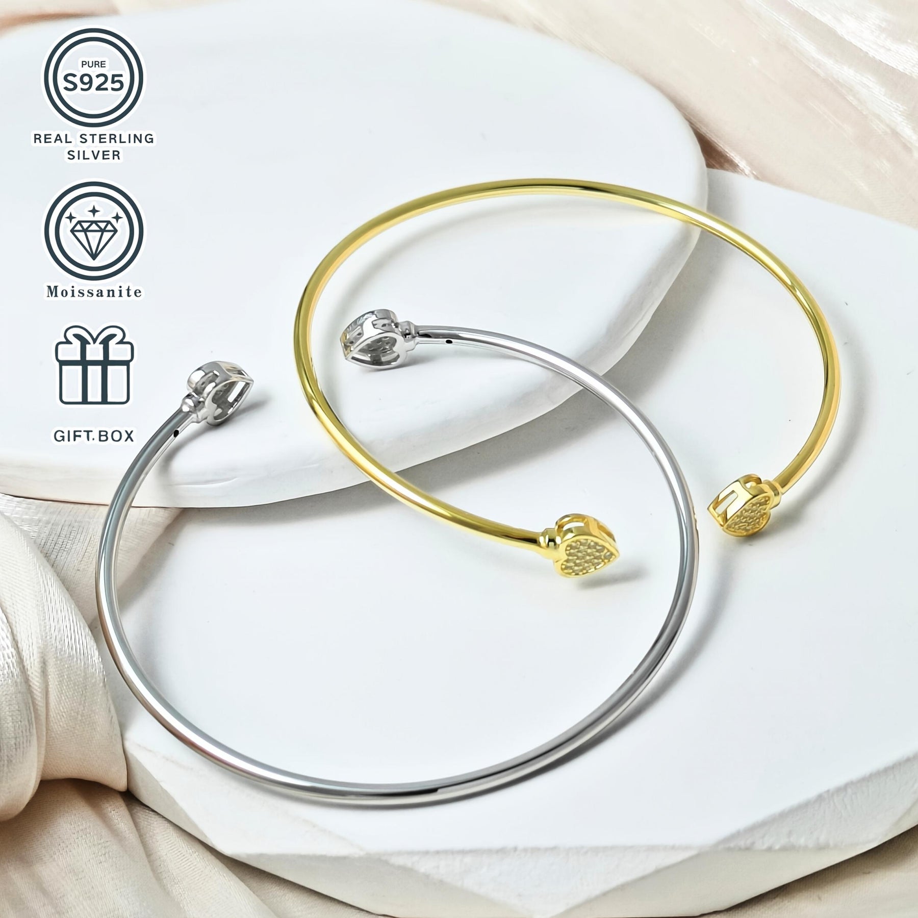 This stunning cuff bracelet features a brilliant moissanite stone set in 925 sterling silver with a 14K golden plating. Ideal for daily wear or special occasions, it makes the perfect Christmas gift for her.