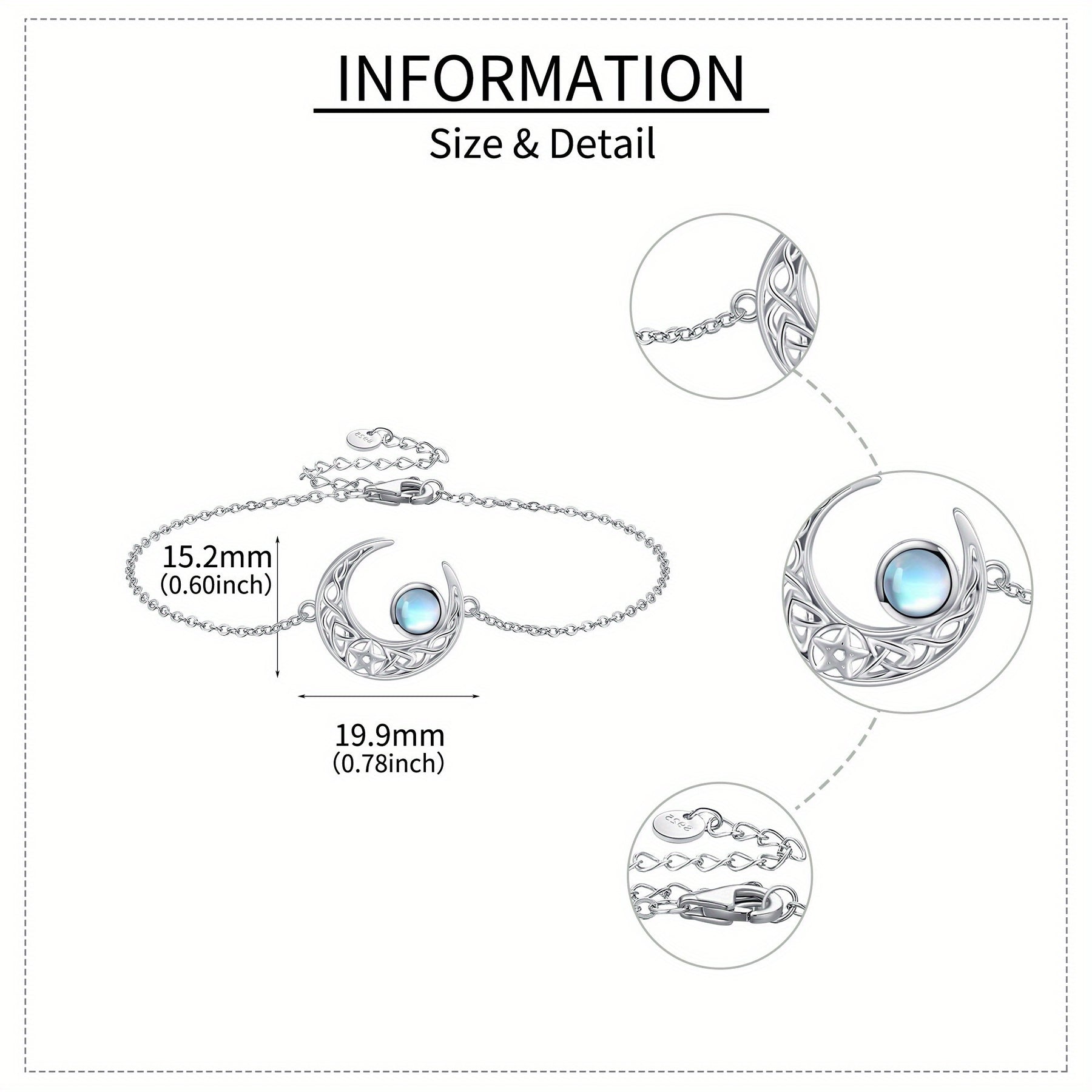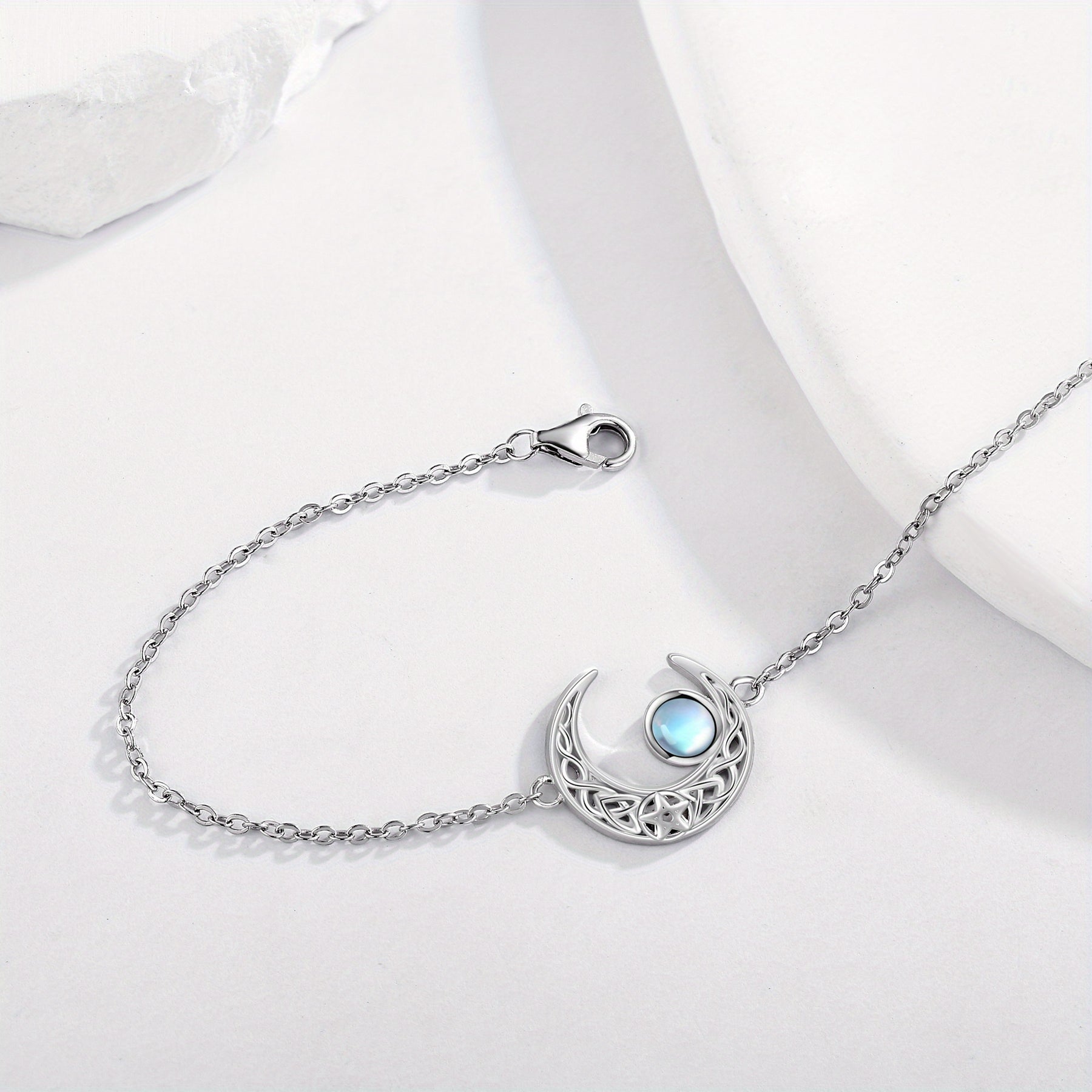 This stunning moon bracelet is made of 925 sterling silver featuring a moonstone gem in a Celtic design. Perfect gift for women on birthdays or graduations.