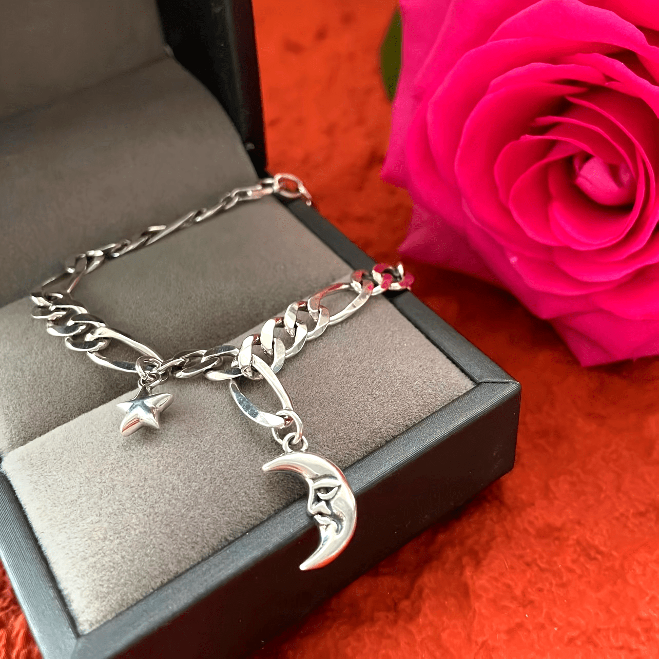 This bracelet features a retro cold wind design with moon and star charms. Made of pure S925 silver, it exudes a niche personality.