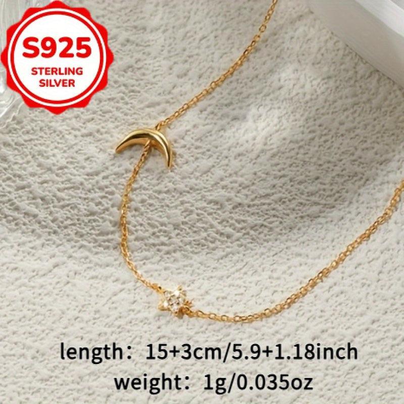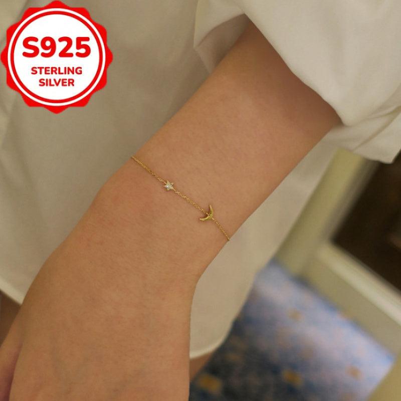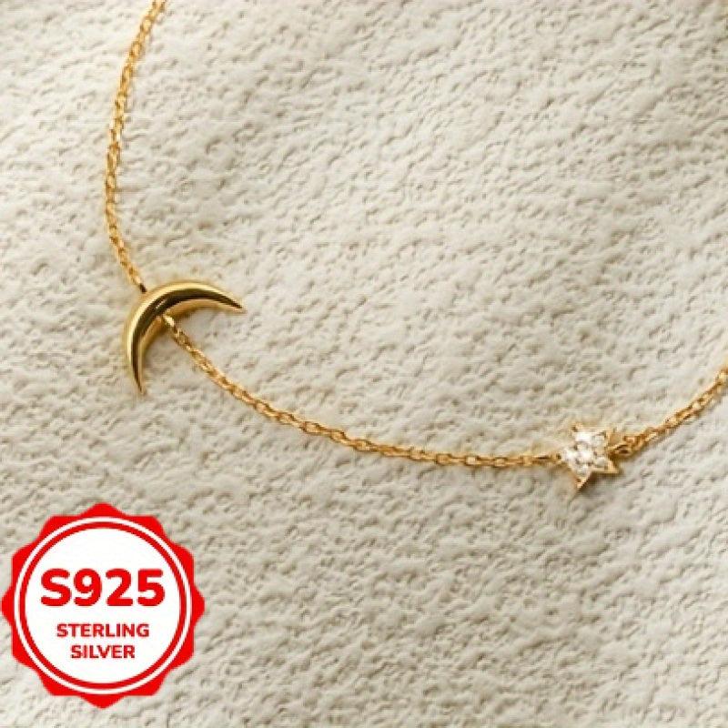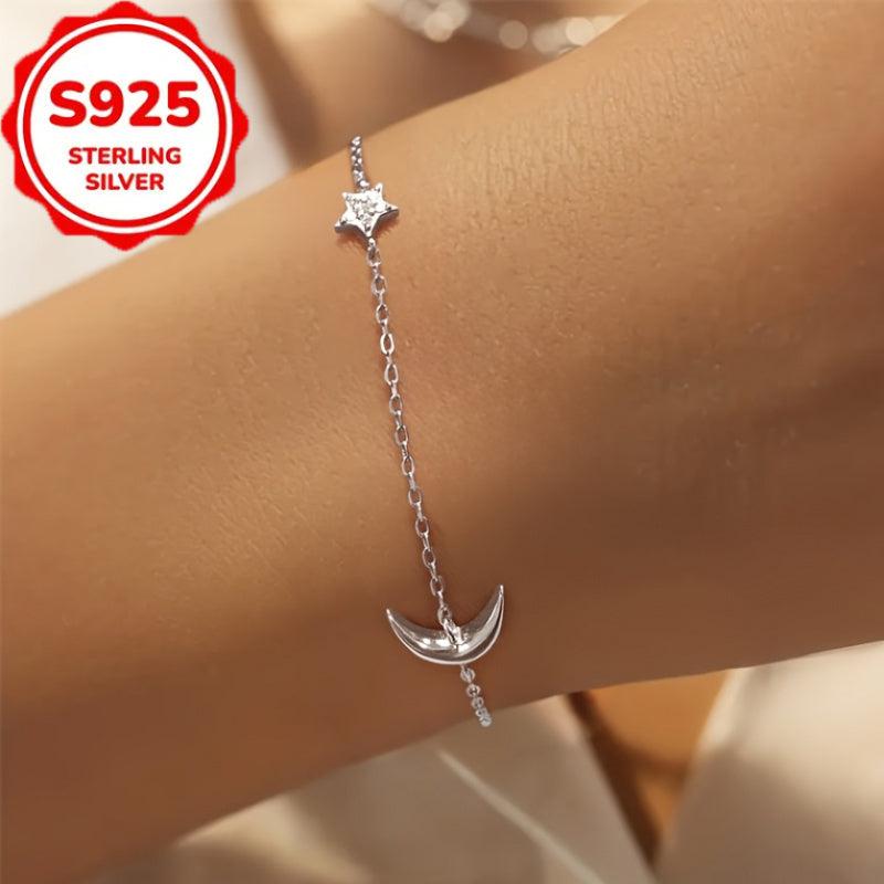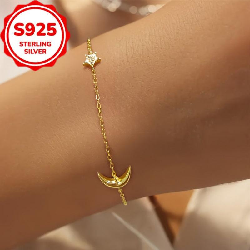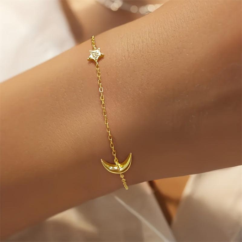 This delicate bracelet features a moon and star charm, perfect for women. It weighs 1g, making it light and comfortable to wear. Ideal gift for any occasion.