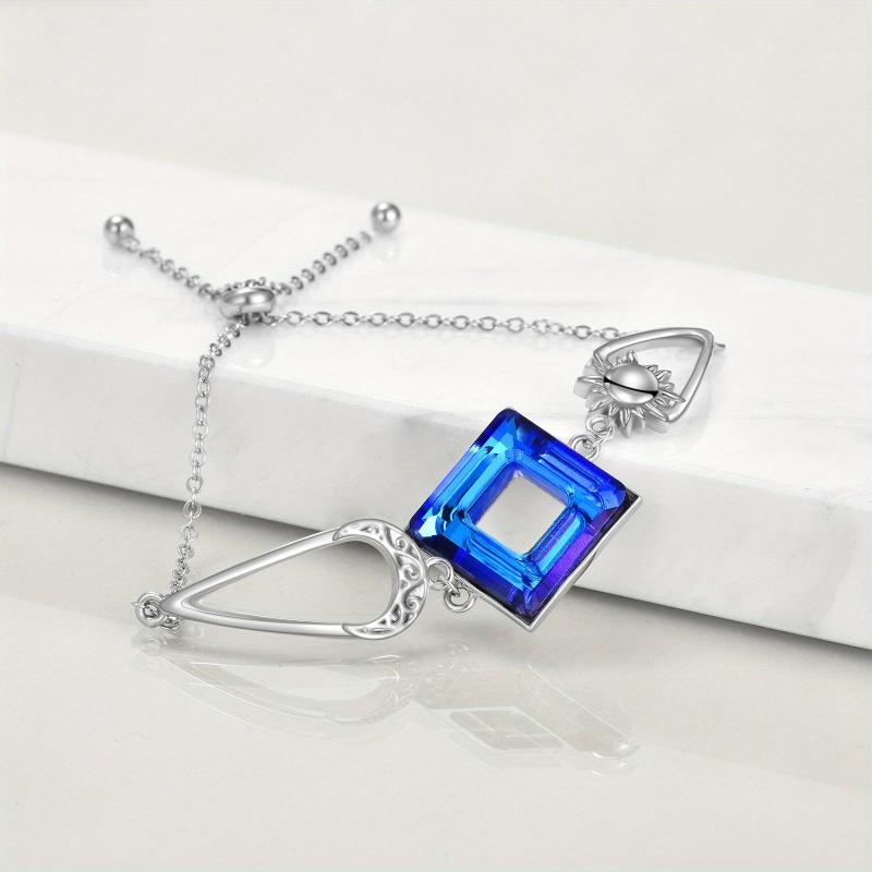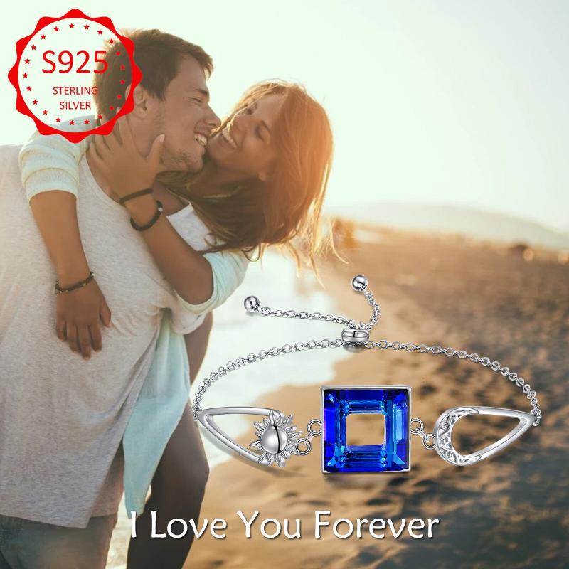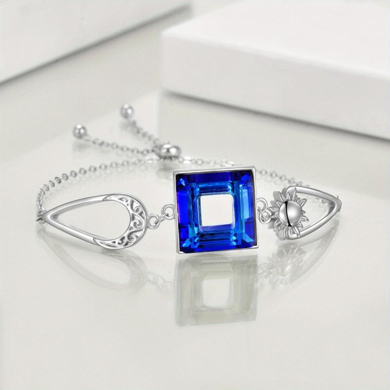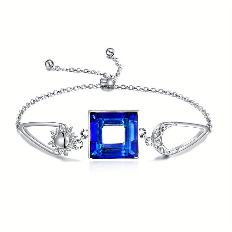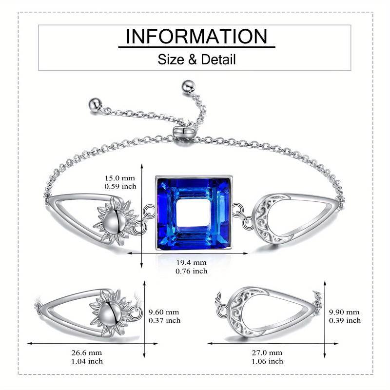 This stunning bracelet features a square crystal set in 925 sterling silver with a moon and sun design. Perfect gift for women and girls.