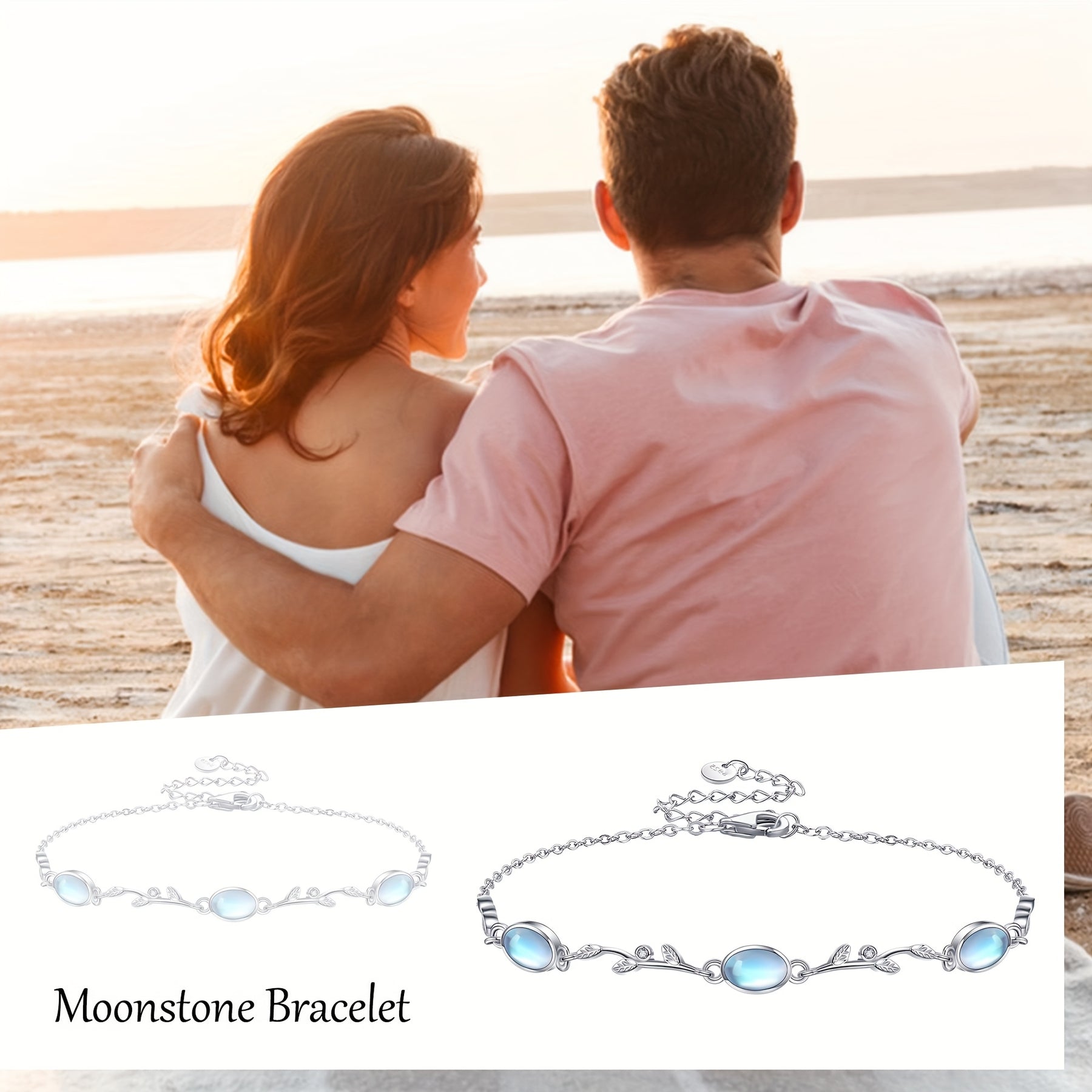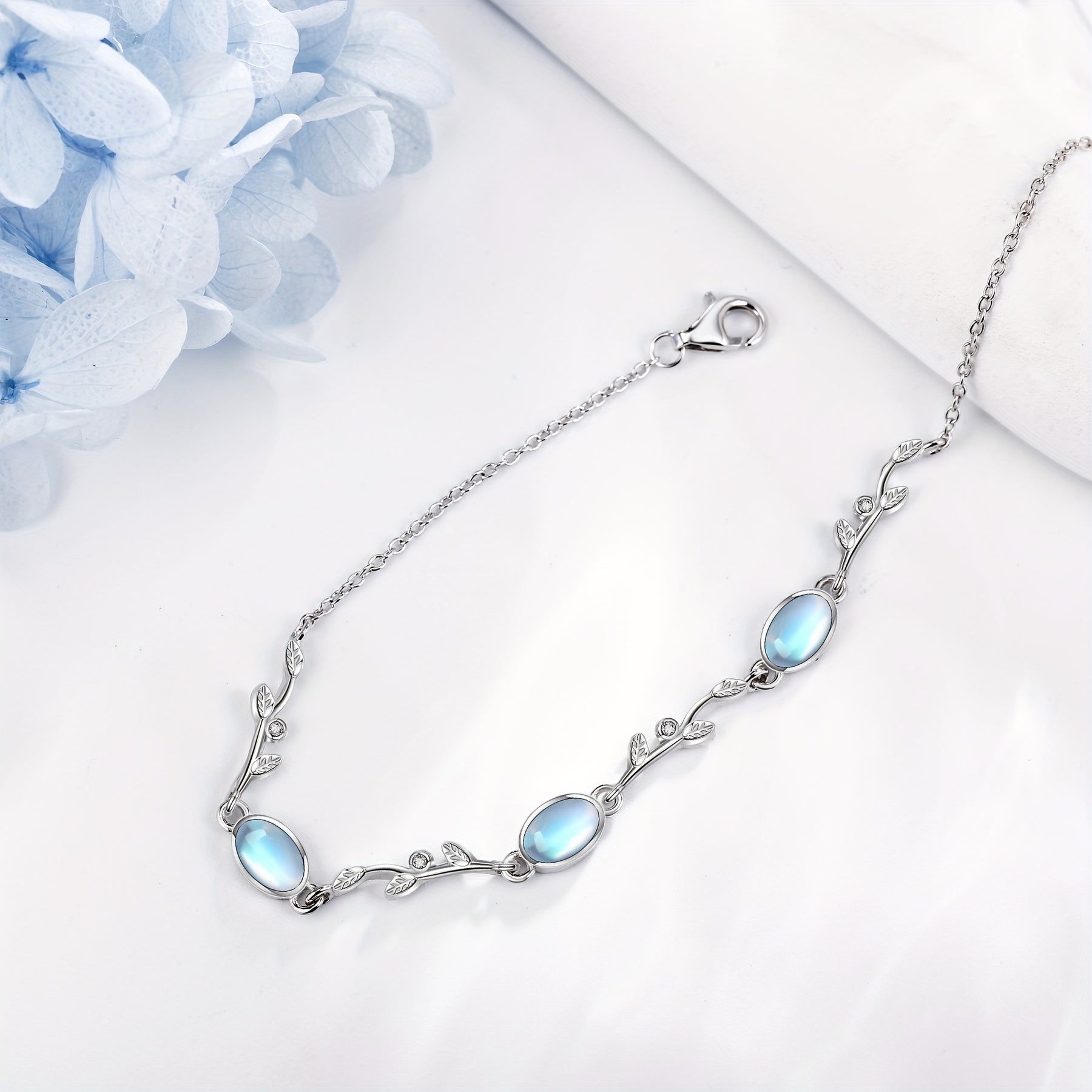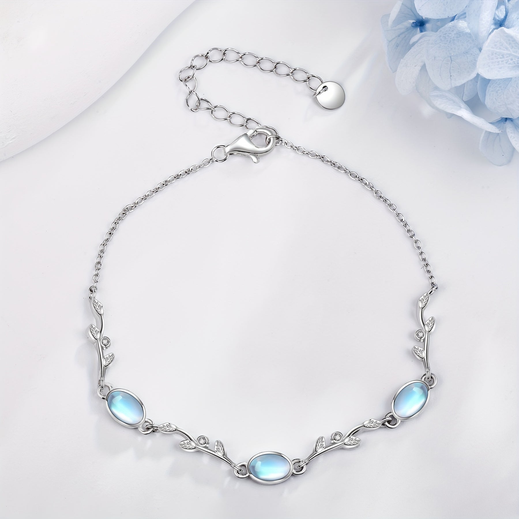 Elegant oval-shaped moonstone bracelet with a tree of life design crafted from 925 sterling silver. Perfect jewellery gift for women, girls, girlfriends, moms.