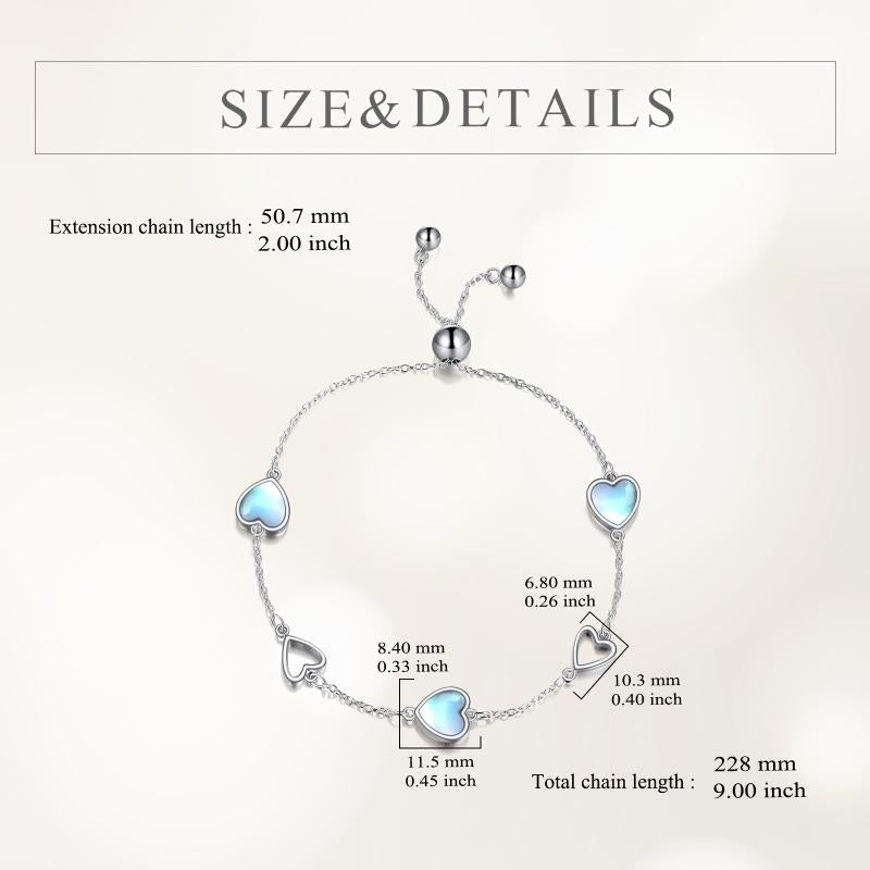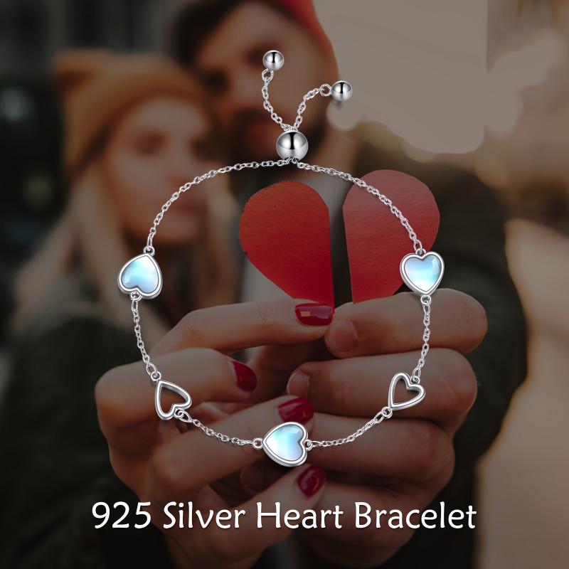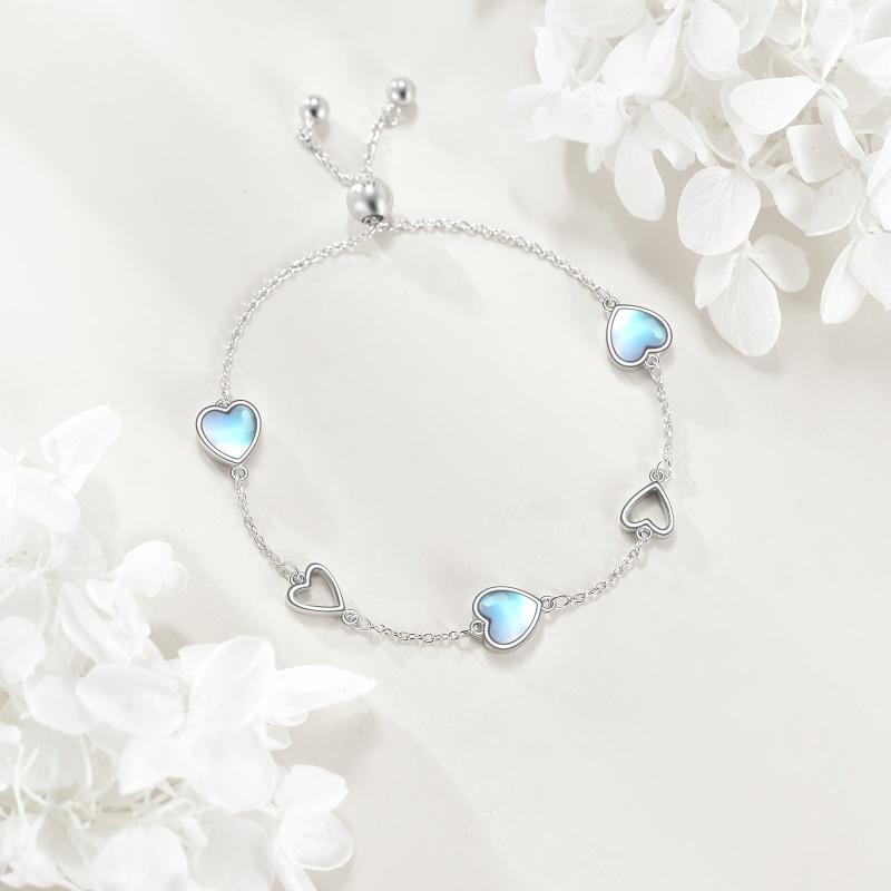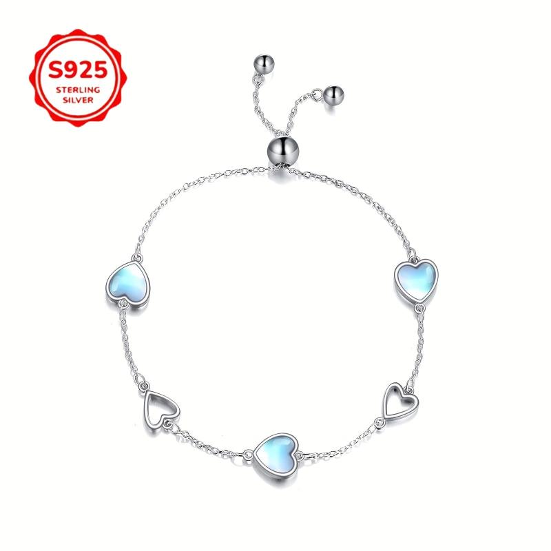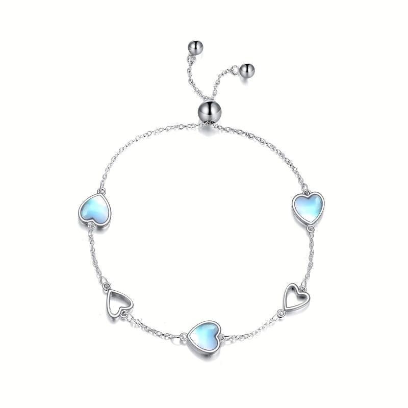 This beautiful bracelet features a heart charm crafted from 925 sterling silver and adorned with a moonstone. The chain is adjustable for a perfect fit. Ideal gift for women on birthdays or special occasions.