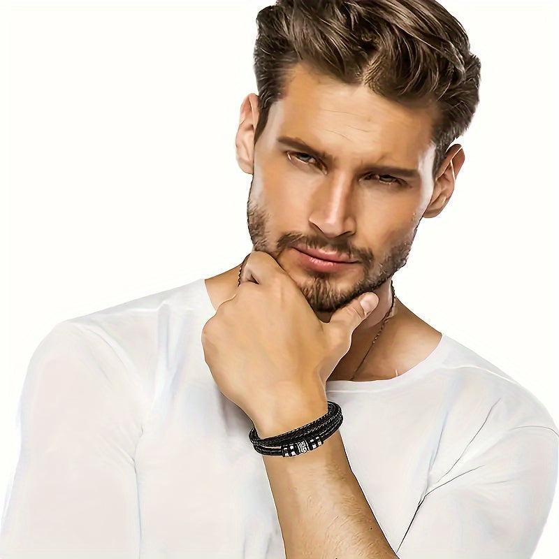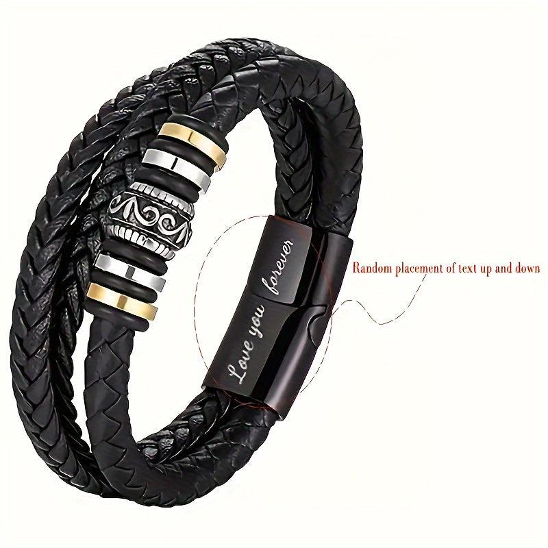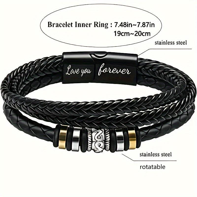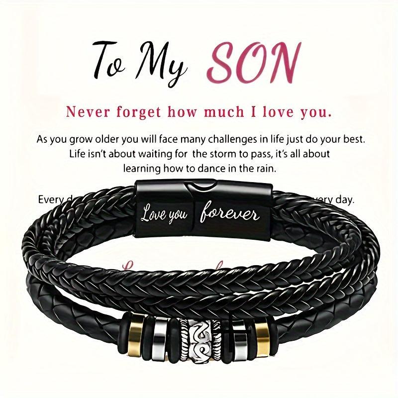 Show your love and appreciation to your son or grandson with this stylish motiviational wristband. The braided faux leather design and stainless steel buckle make it a perfect accessory for any occasion.
