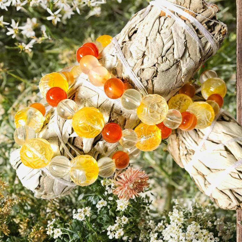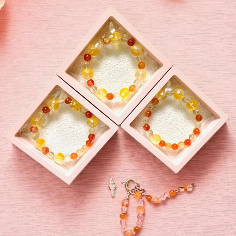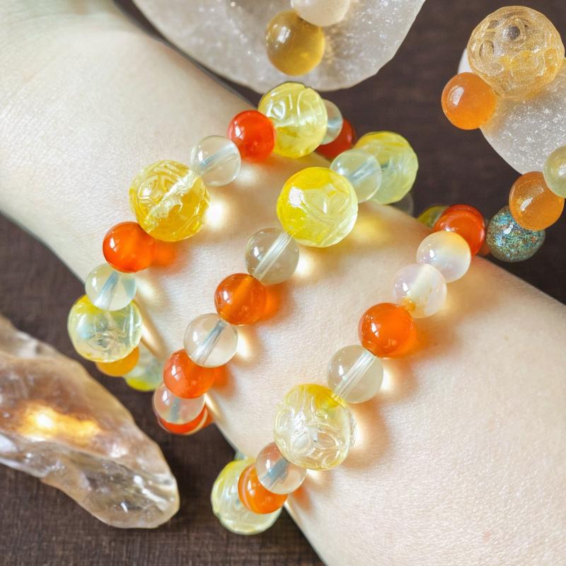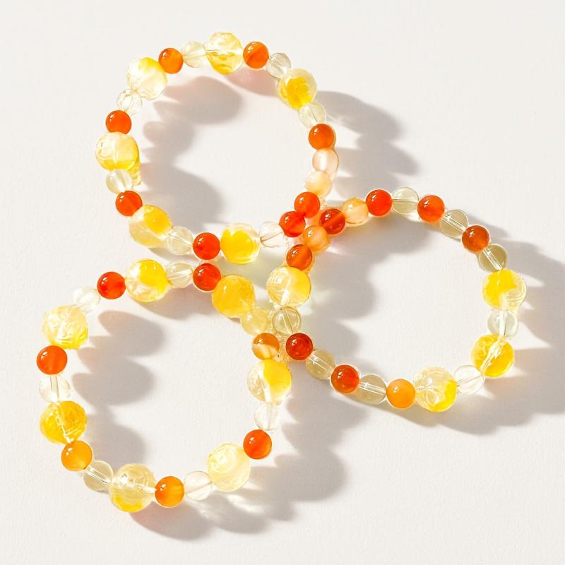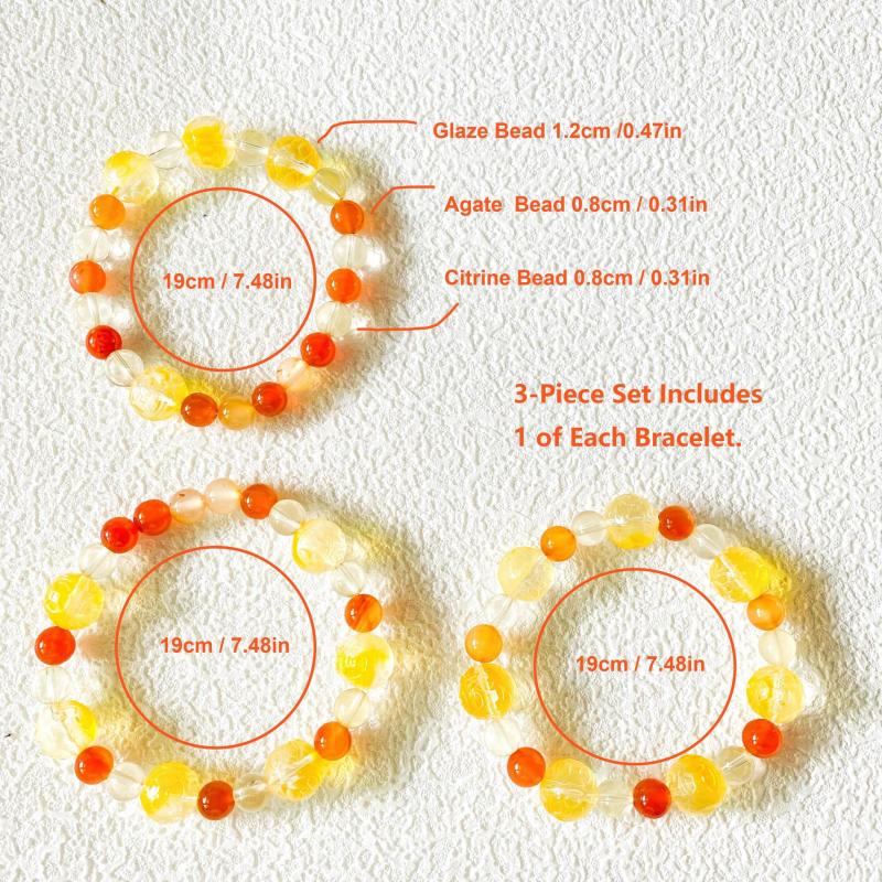 This 3-piece bracelet set features natural agate and citrine crystals beaded with yellow glaze balls. It is 19 cm in length and makes a perfect gift idea.