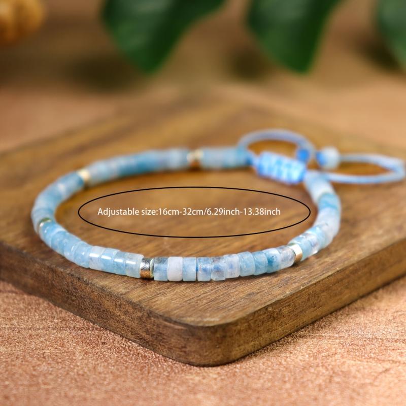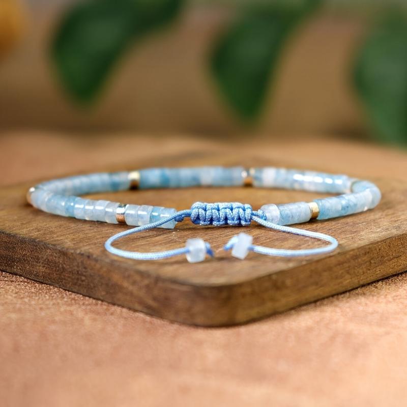 Elegantly handcrafted aquamarine bracelet with beads, perfect as a minimalist March birthstone gift for women and friends.