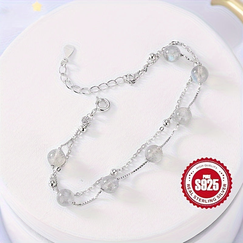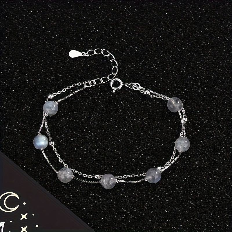 This high-end bracelet is a fashionable and versatile piece, featuring a natural flaw crystal moonstone design. The double layer adds a unique touch, suitable for those with a niche and forest gray moonlight style.