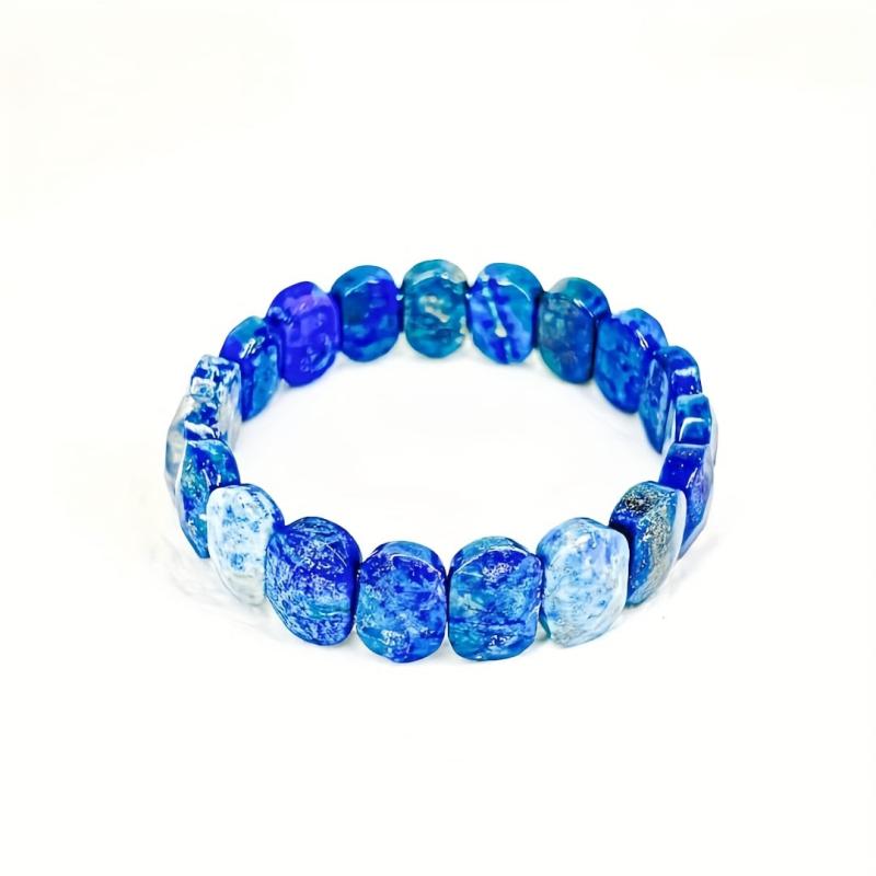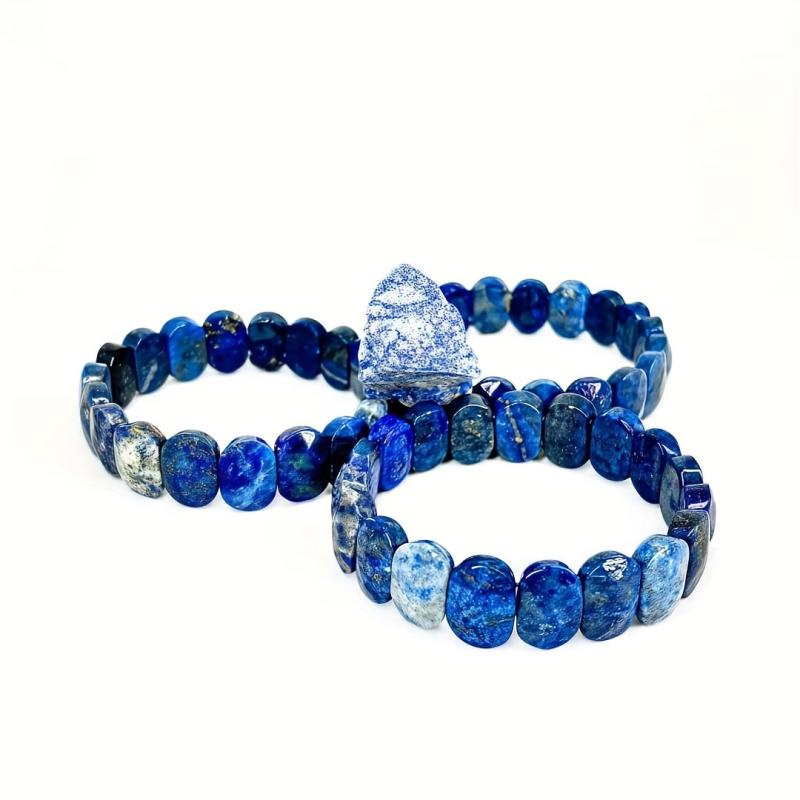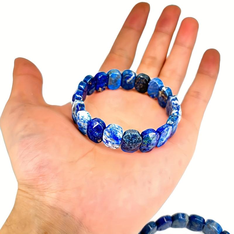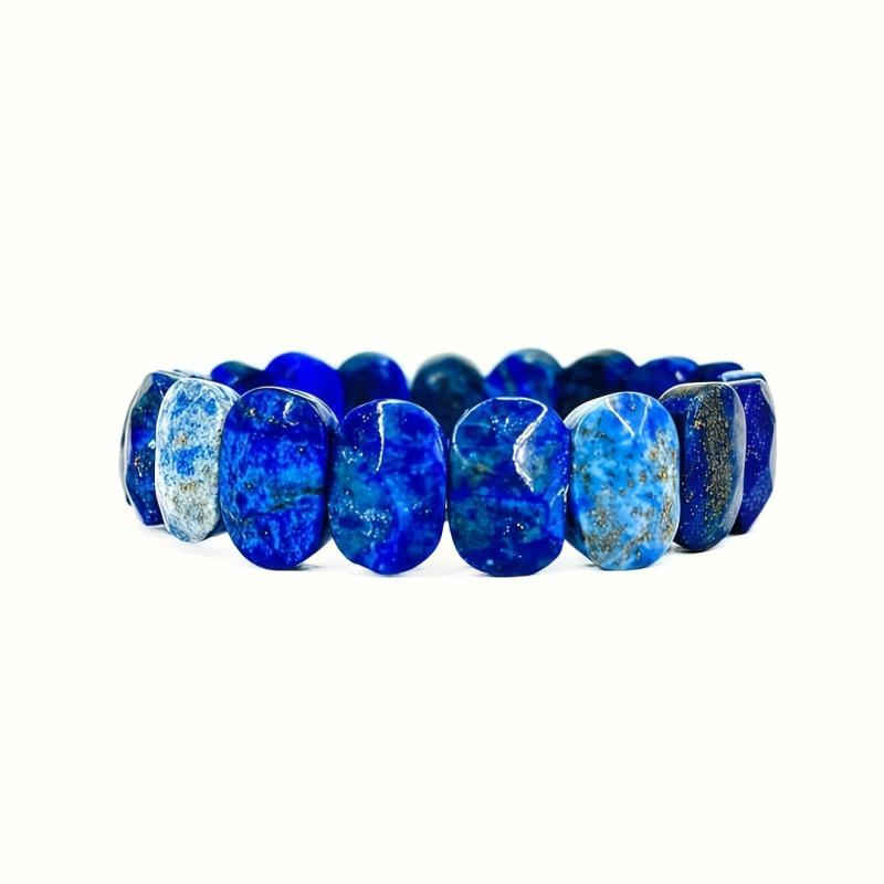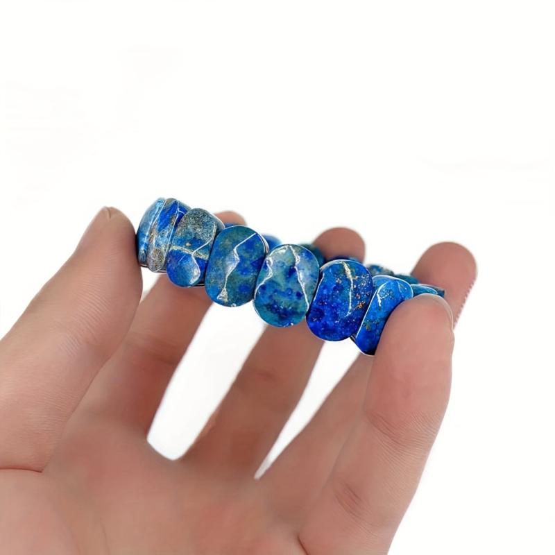 Handcrafted Lapis Lazuli bracelet with golden flecks, symbol of protection and good fortune. Ideal for September birthdays.