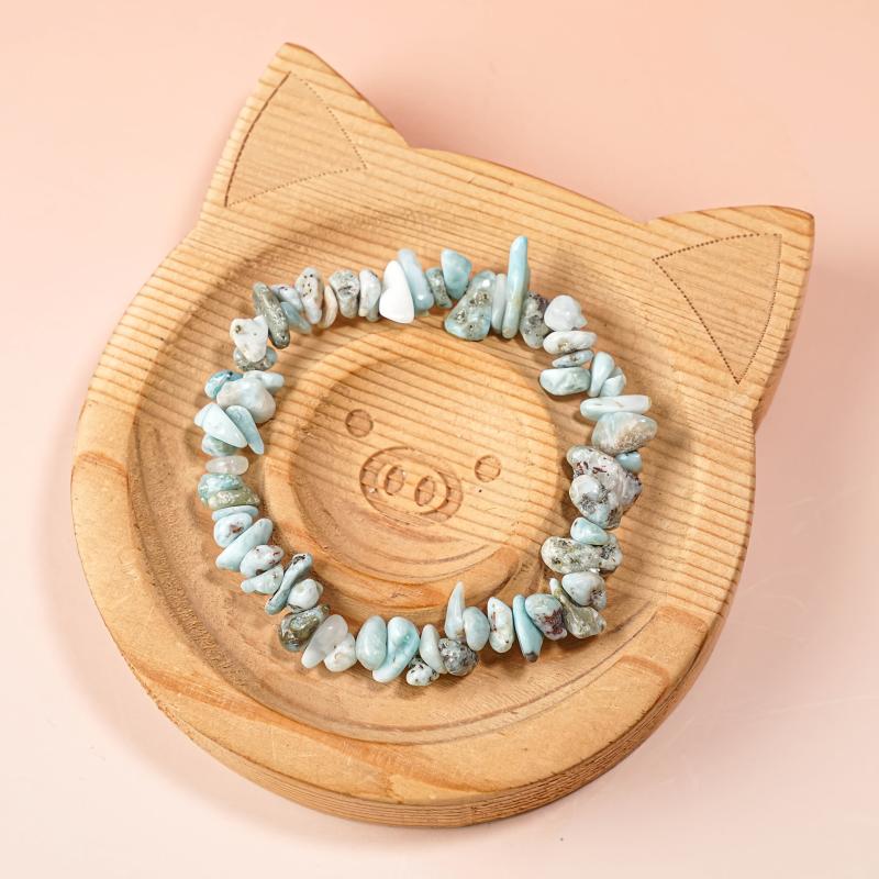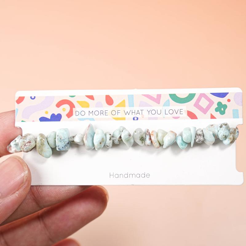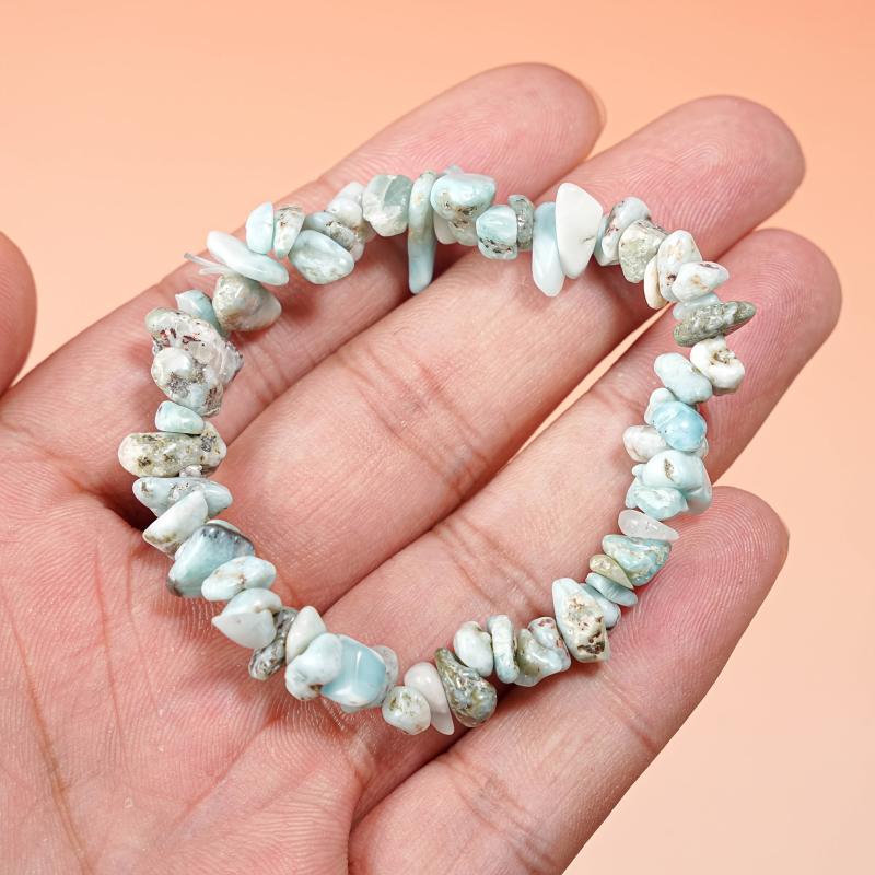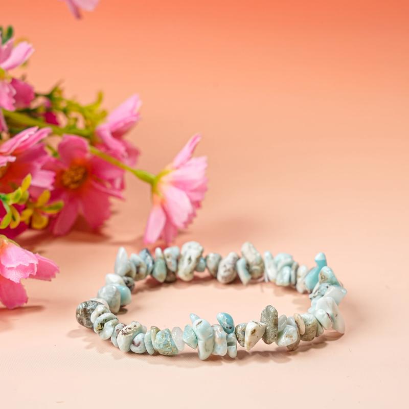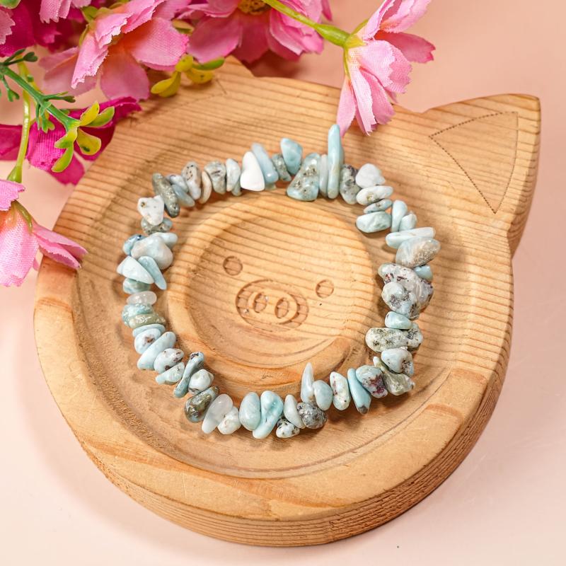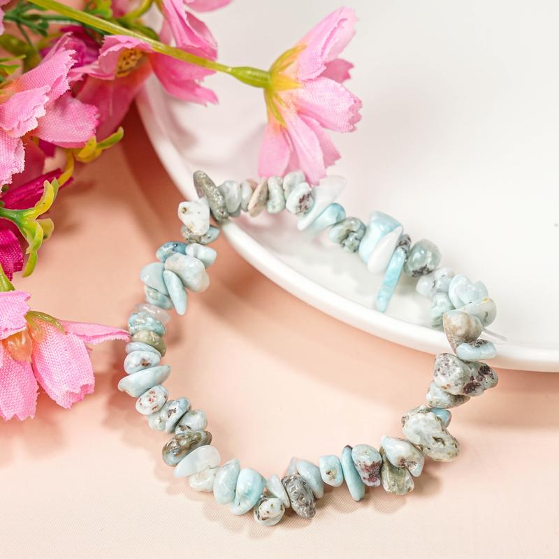 This beautiful bracelet features natural Larimar stones with blue and gray marbling, creating a unique and bohemian look. The stretch design allows for an adjustable fit to accommodate all wrist sizes. It makes a perfect Valentine's Day gift for your loved one.