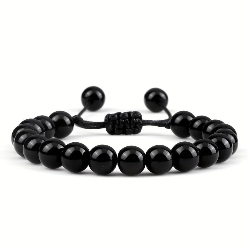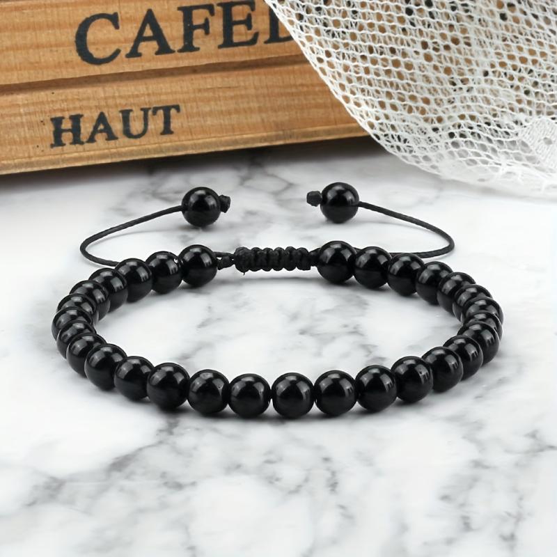 This bracelet features hand-woven glossy 8mm natural stone beads, making it a perfect accessory for parties or vacations. It also makes for a great gift to loved ones.