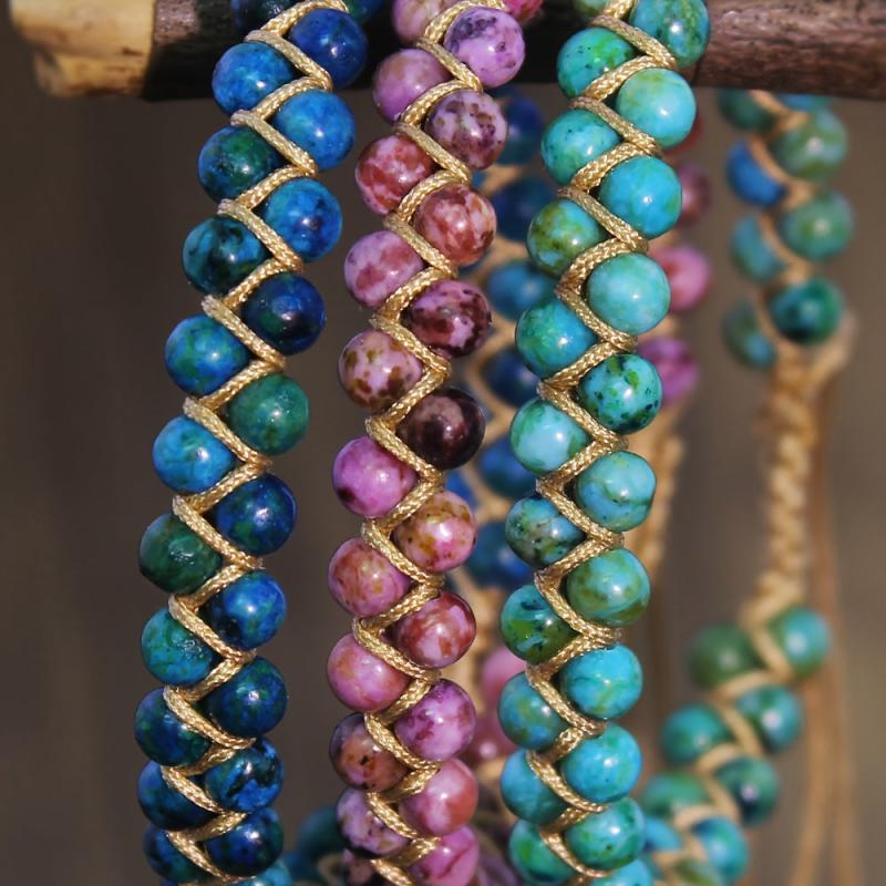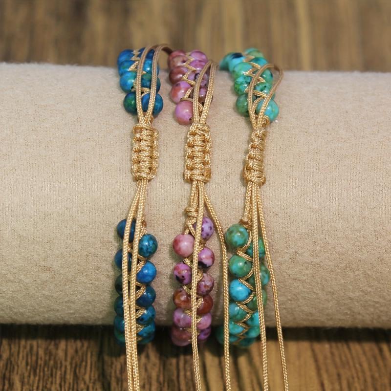 This bracelet is hand-woven with natural stone turquoise, making it a beautiful and unique accessory for mothers and ladies. It features a double layer design for added style and adjustability.