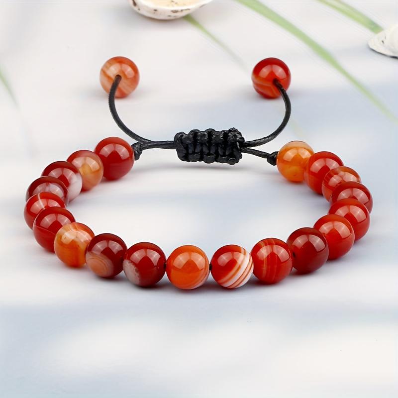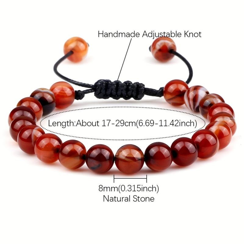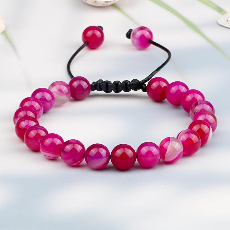 This stylish bracelet features natural striped agate stones and is hand woven with a variety of colors. Perfect for adding a fashionable touch to your outdoor vacation outfits.