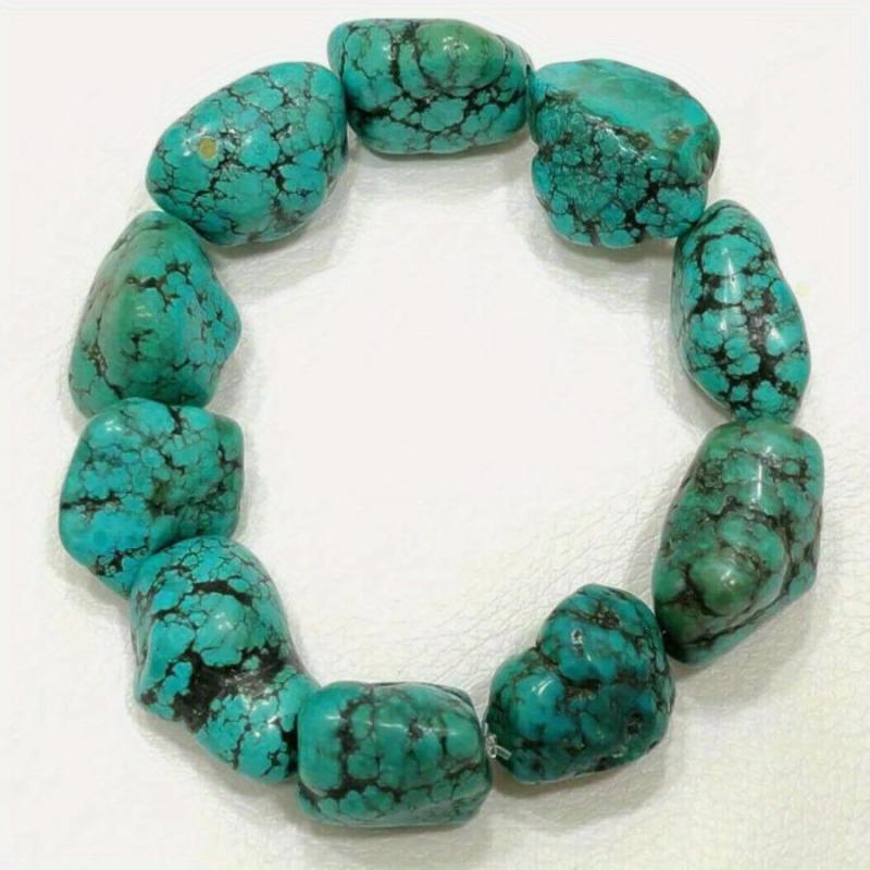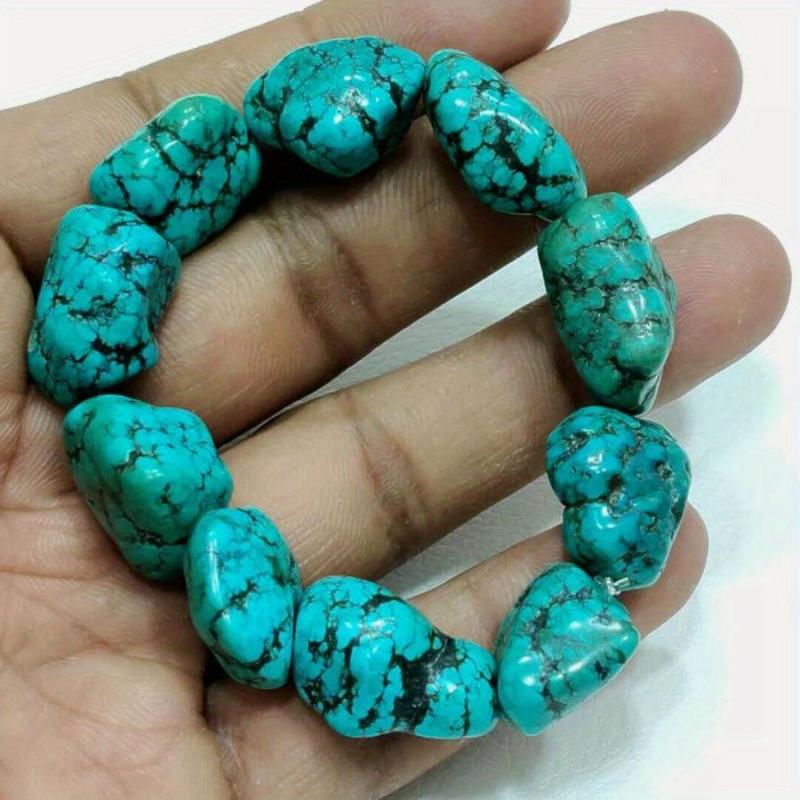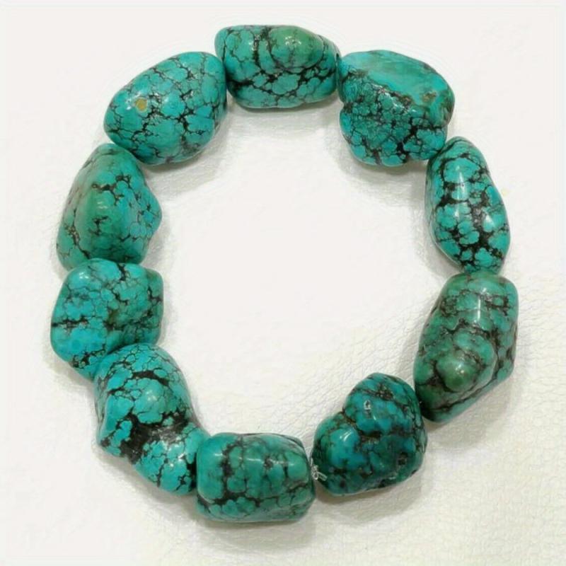 Elevate your style with this natural raw stone block bracelet made of genuine turquoise. A perfect gift for men.