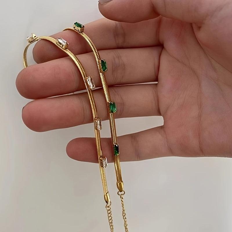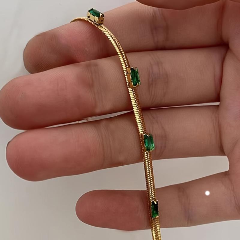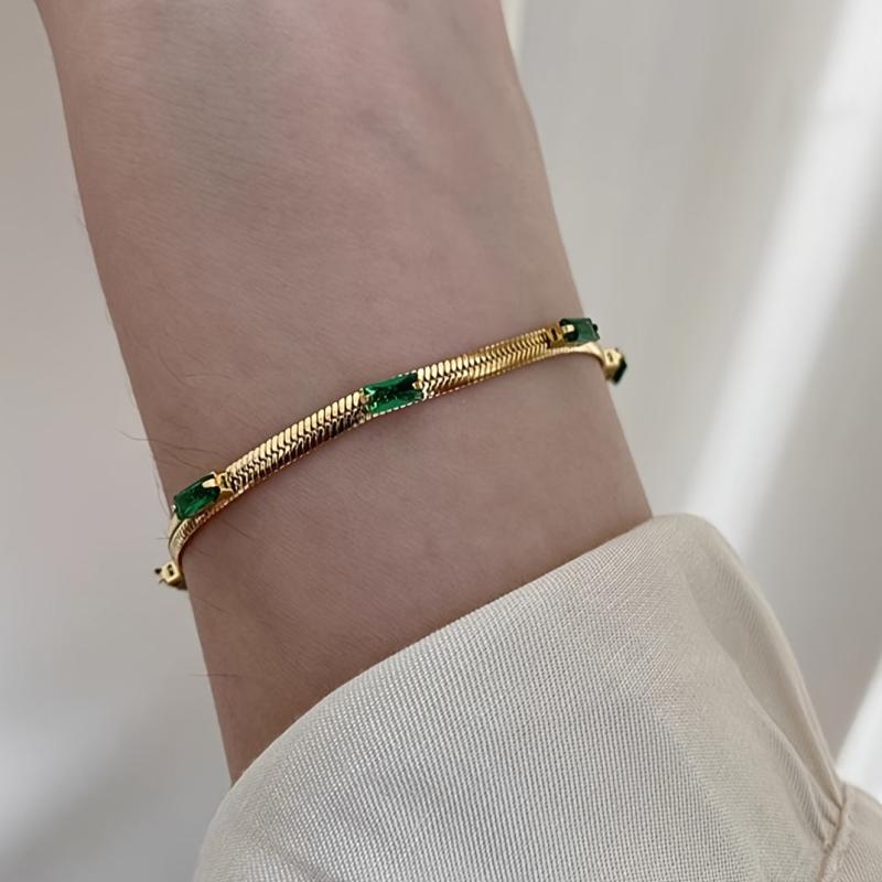 Enhance your style with this Nooxian vintage bracelet featuring intricate detailing, cubic synthetic zirconia stones in green, perfect for everyday and vacation wear.