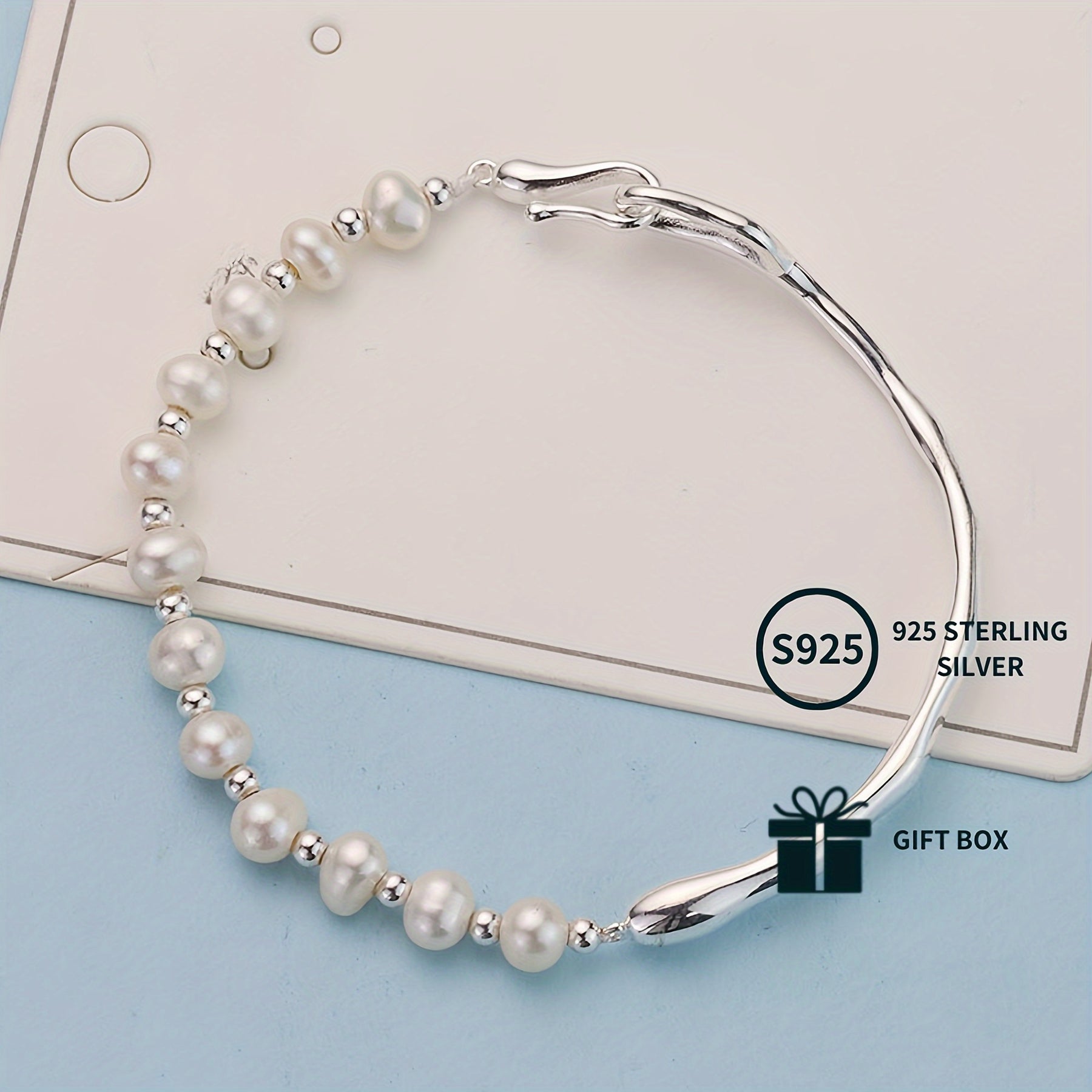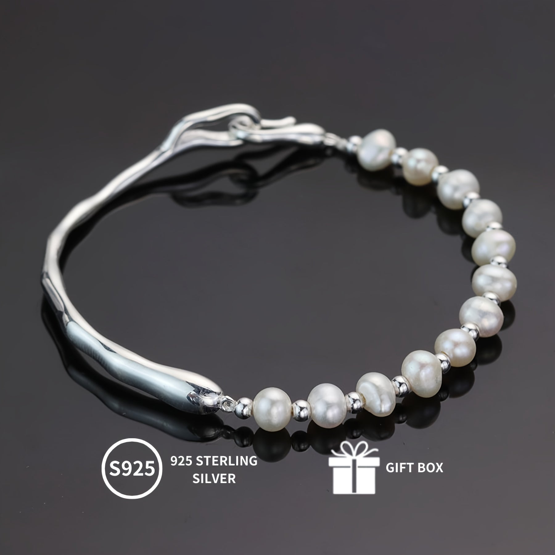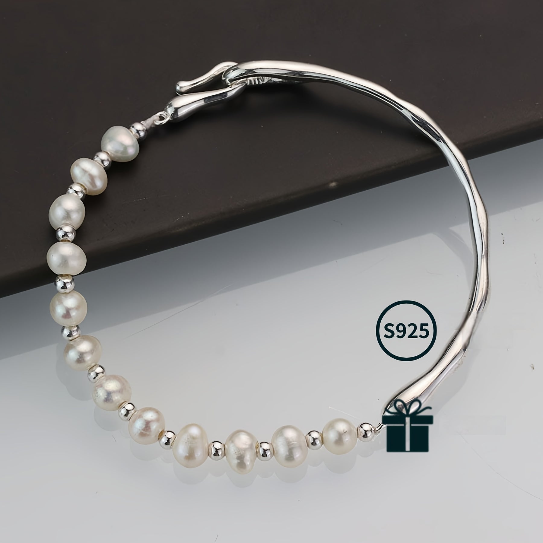 Elegant vintage-inspired half bangle bracelet made of S925 sterling silver accented with lustrous freshwater pearls. Perfect for daily wear, weddings, proposals, and parties.
