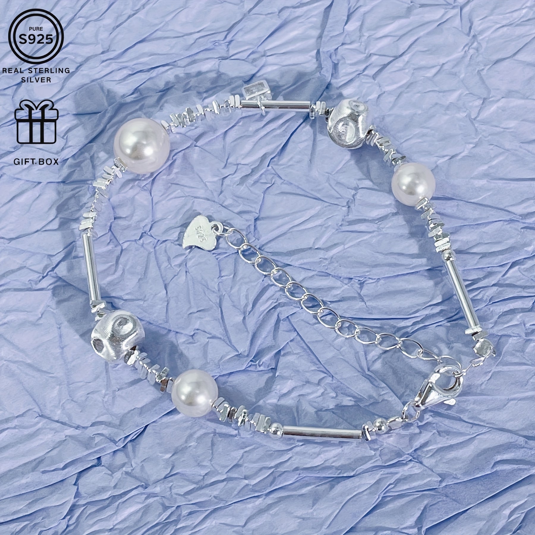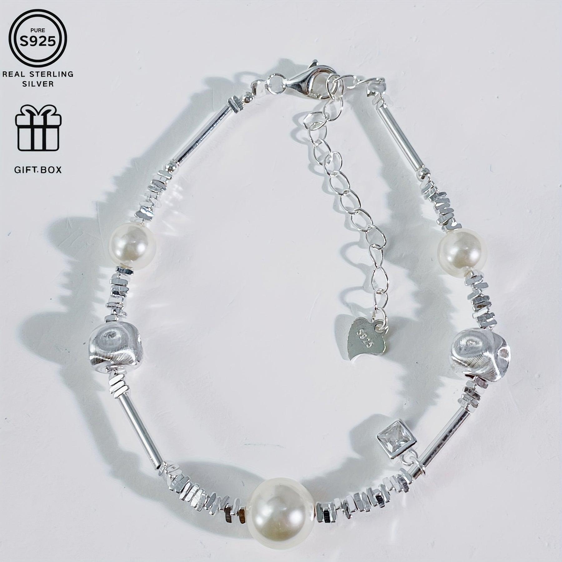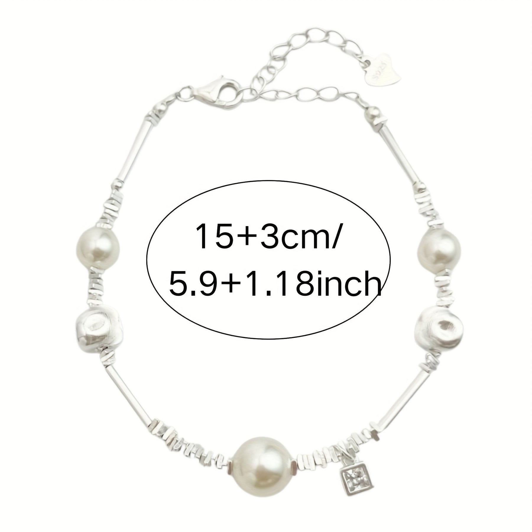 Unique heart charm bracelet made of sterling silver with faux pearl accents. Perfect gift for Christmas and Halloween. Add a touch of elegance to your outfit with this high-quality accessory.