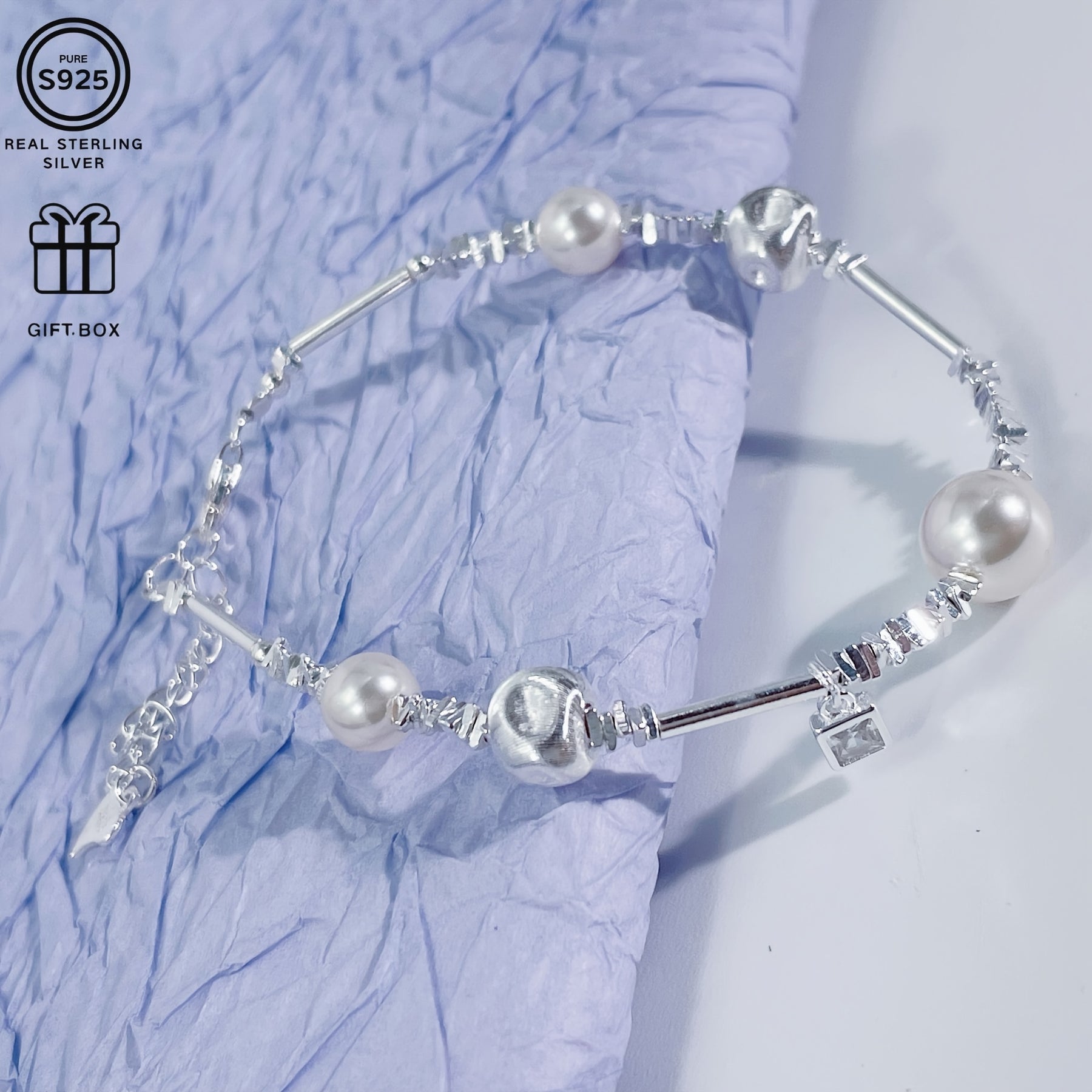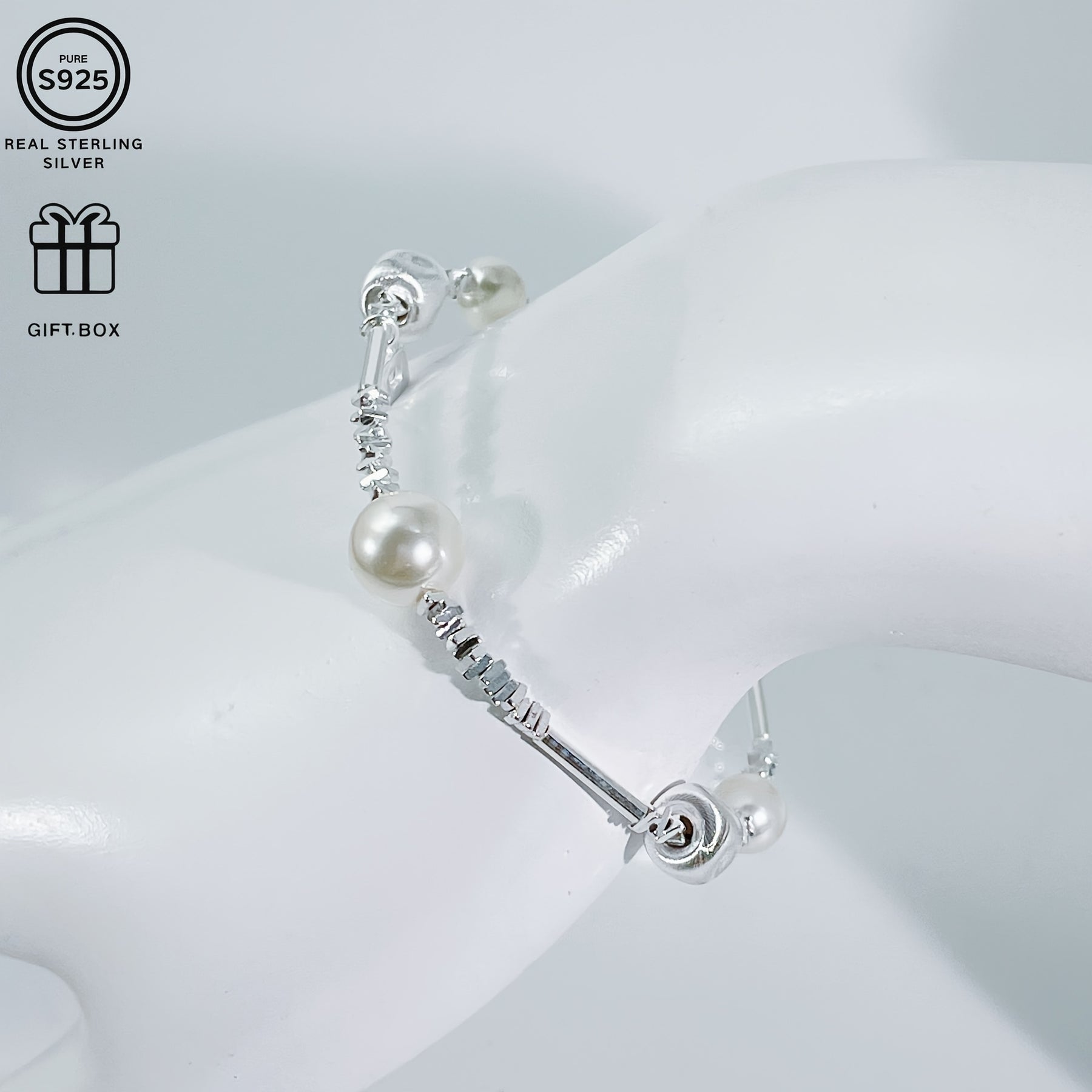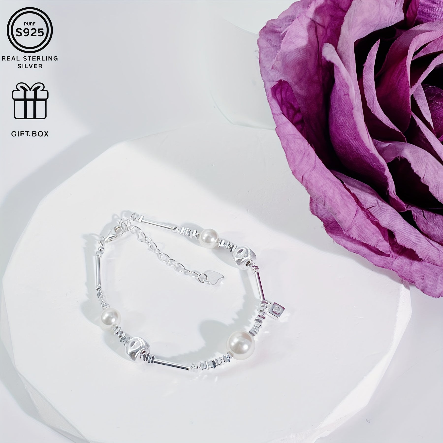 Unique heart charm bracelet made of sterling silver with faux pearl accents. Perfect gift for Christmas and Halloween. Add a touch of elegance to your outfit with this high-quality accessory.