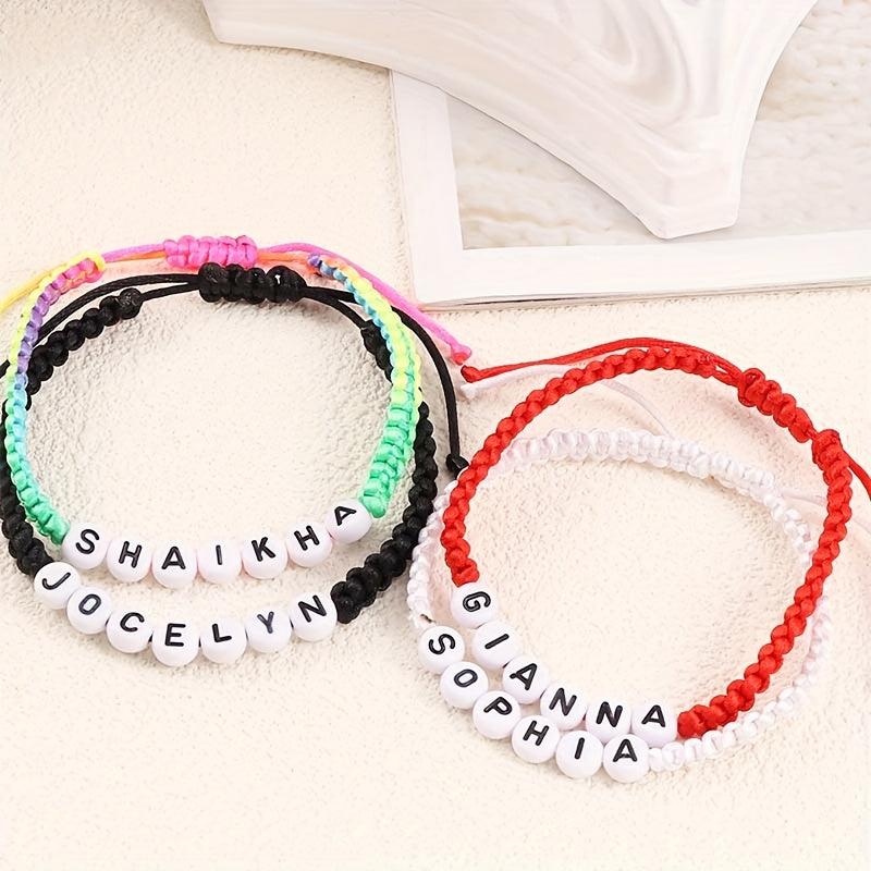 This beaded bracelet features personalized lettering and is designed for both men and women. The adjustable wristband adds a unique touch to your style.