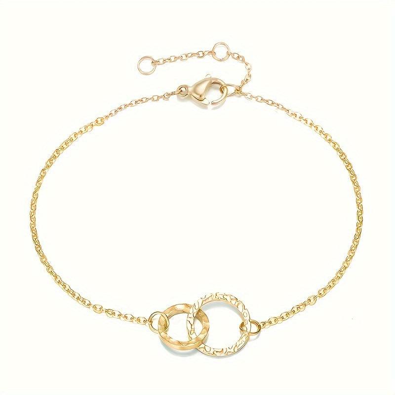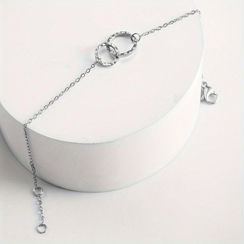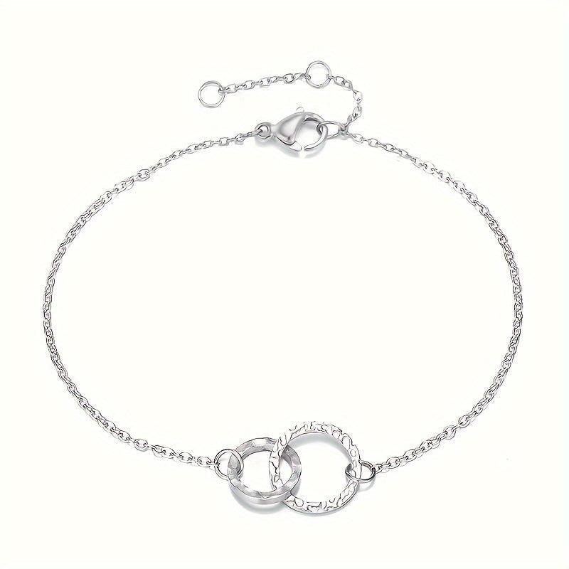 This minimalist double circular hollow bracelet is made of stainless steel, perfect for daily wear.
