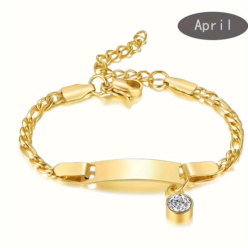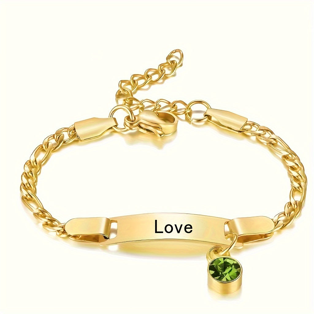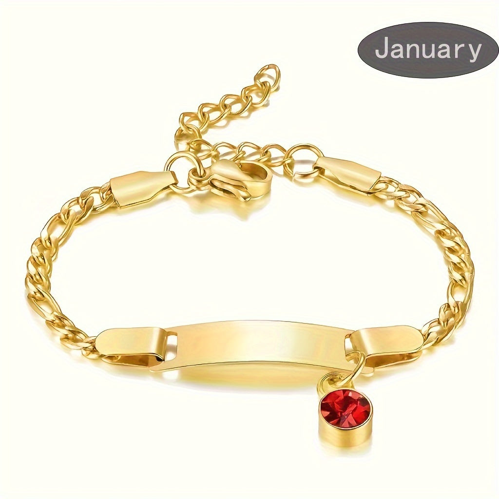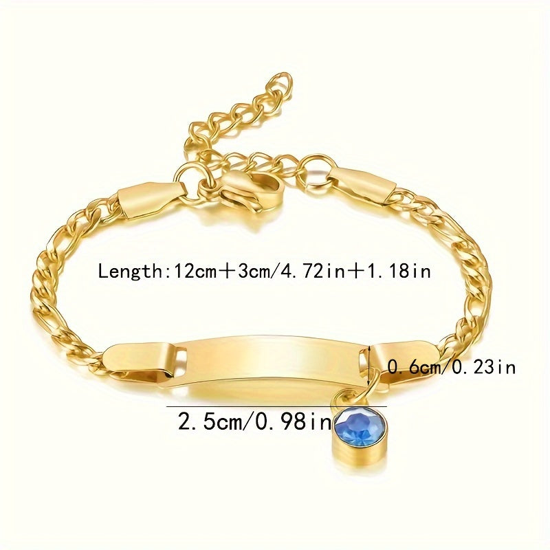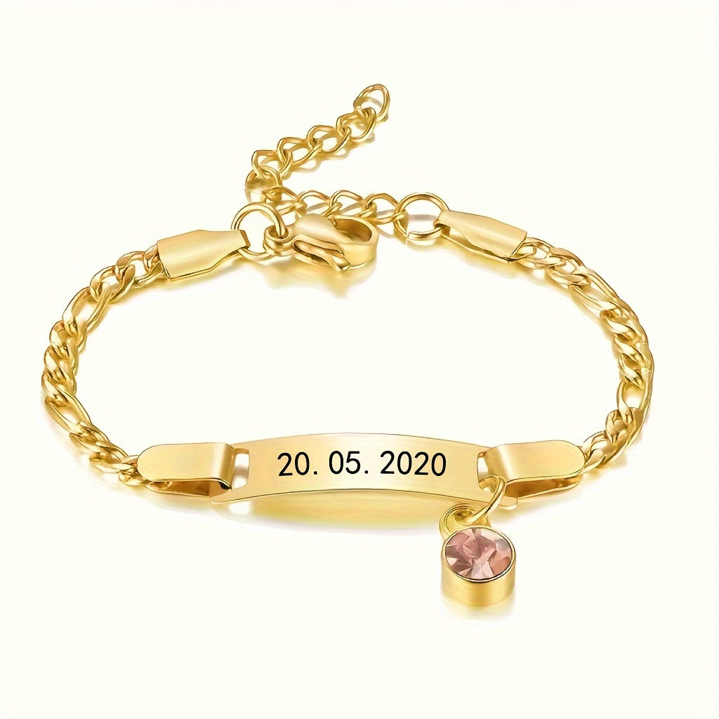 Stylish stainless steel bracelet with adjustable chain featuring a custom engraving of your name and date alongside December's birthstone. Ideal for daily wear.