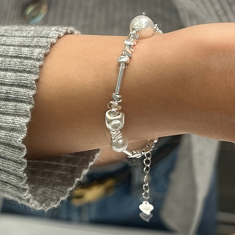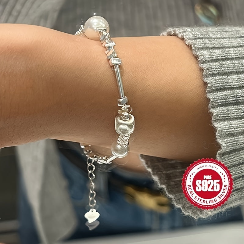Elevate your Christmas party look with this unique and sterling silver jewelry. This high-end accessory is perfect for any single party. The pearl square geometric bracelet adds a touch of elegance to your outfit.