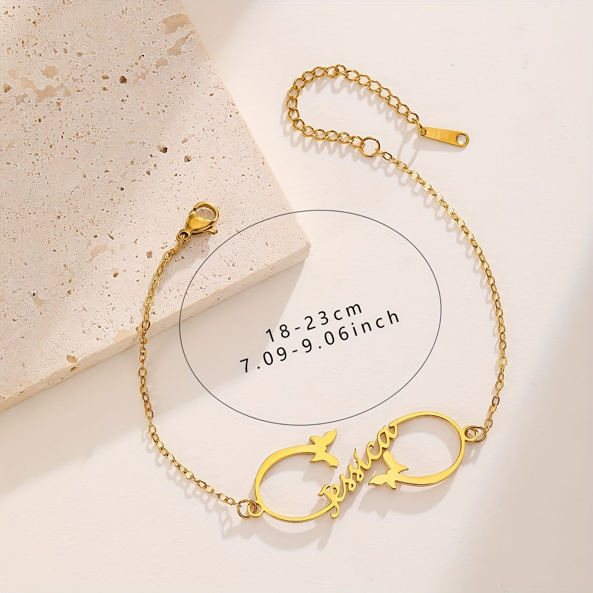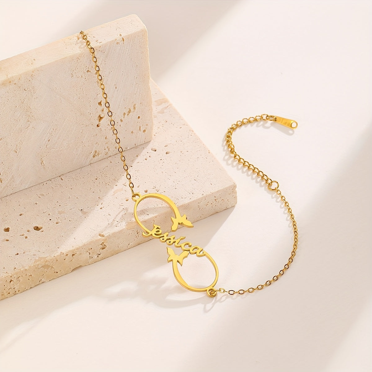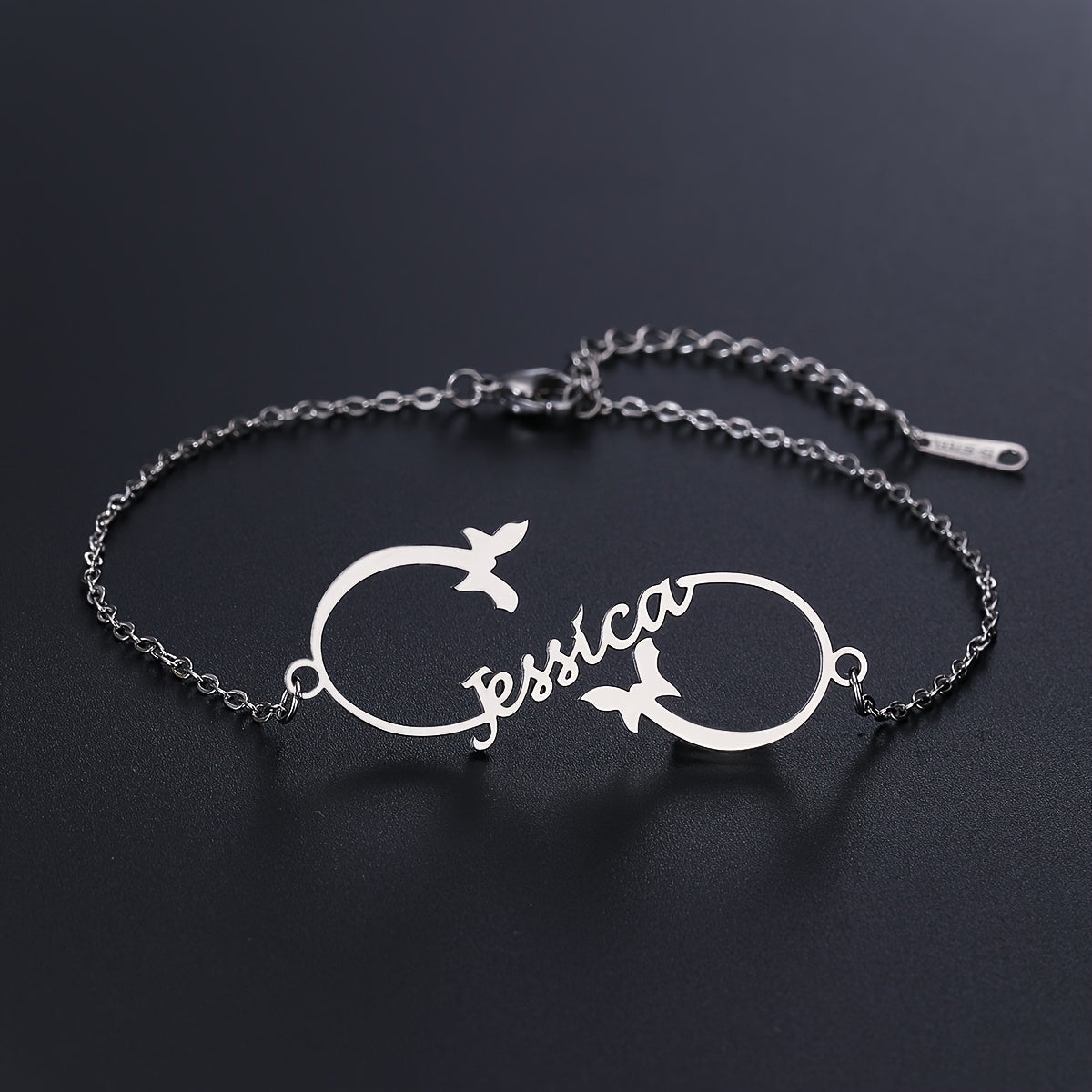 This adjustable stainless steel bracelet features a beautiful butterfly motif and can be engraved with a custom name. It is perfect for both daily wear and special occasions.
