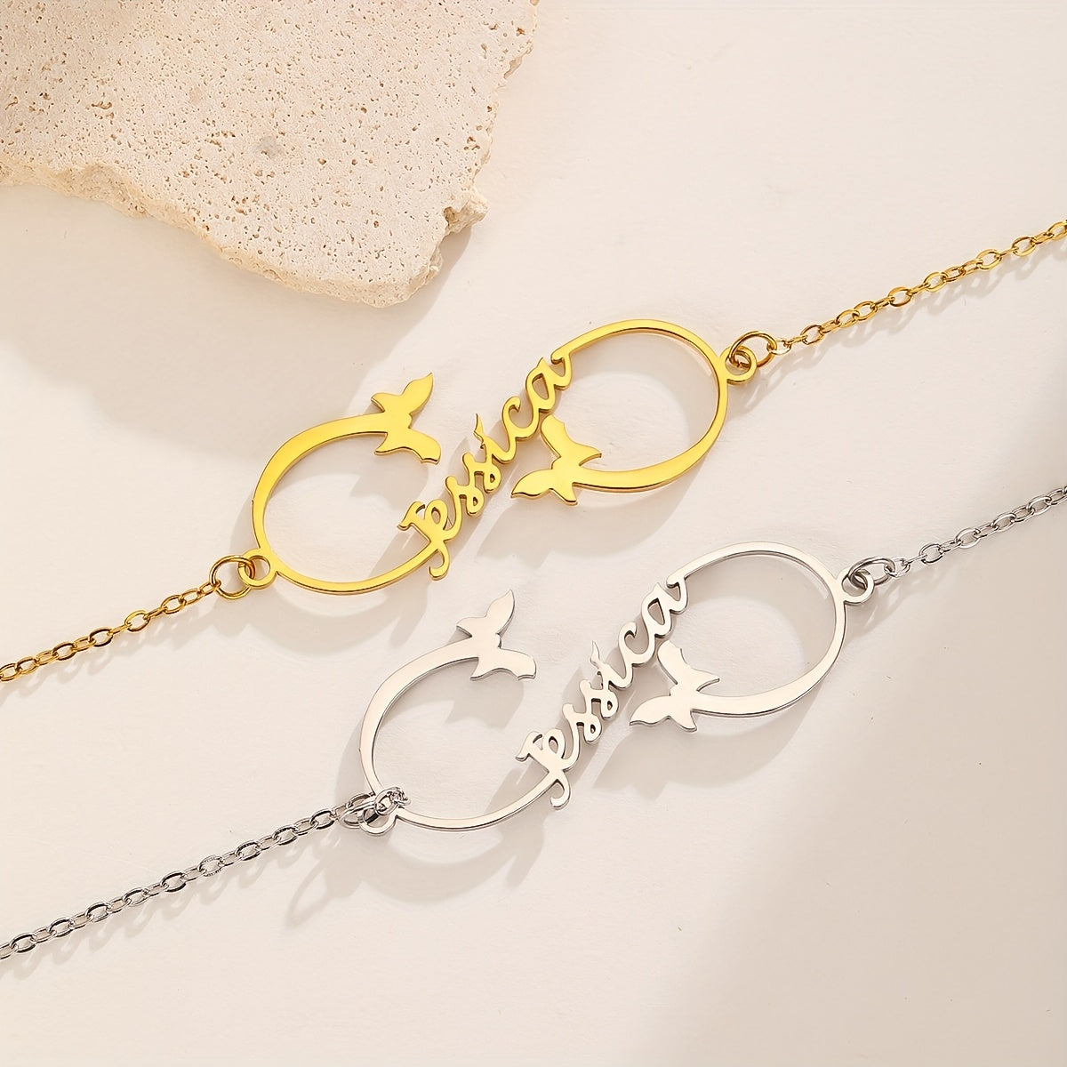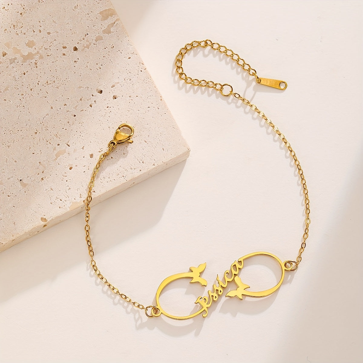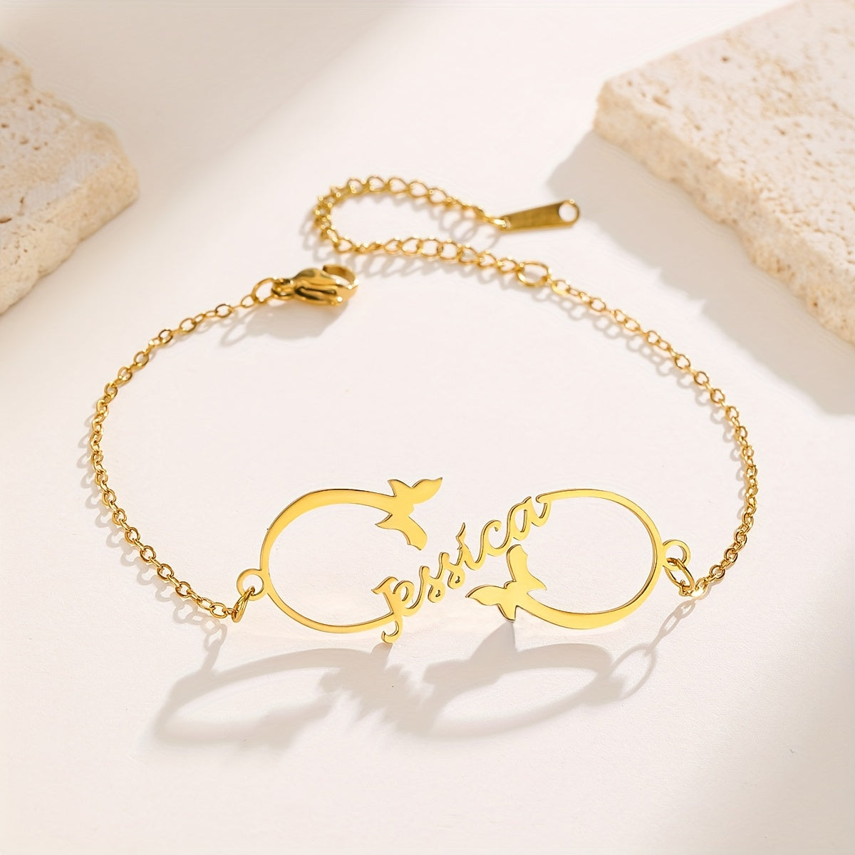 This adjustable stainless steel bracelet features a beautiful butterfly motif and can be engraved with a custom name. It is perfect for both daily wear and special occasions.
