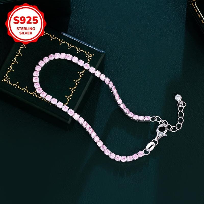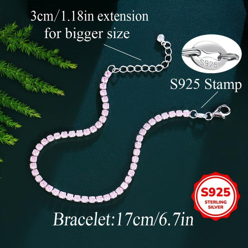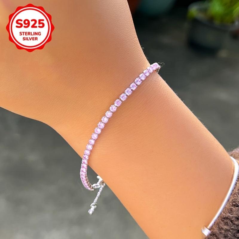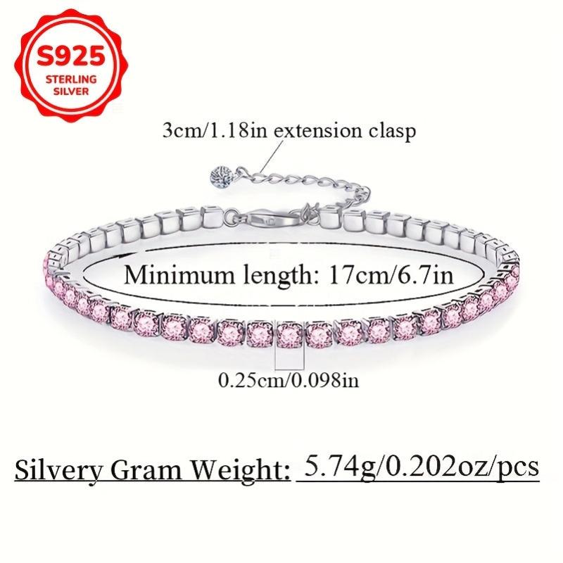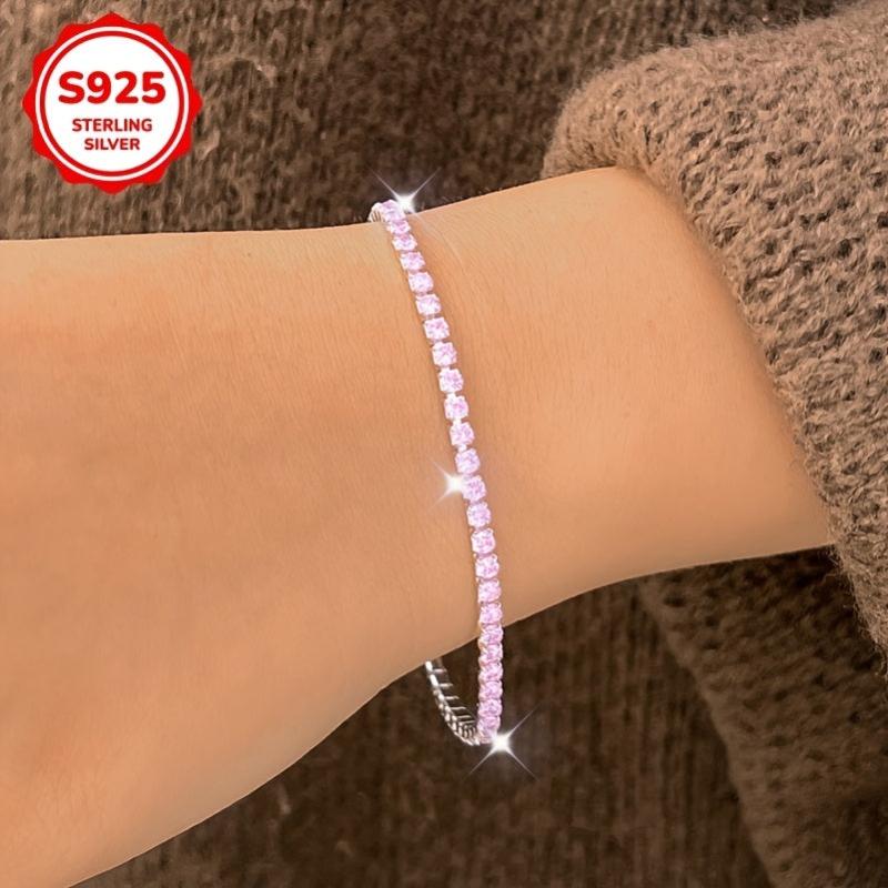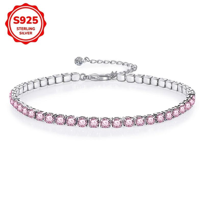 Stylish pink tennis bracelet made from hypoallergenic material with 2.5mm round cut synthetic stones.
