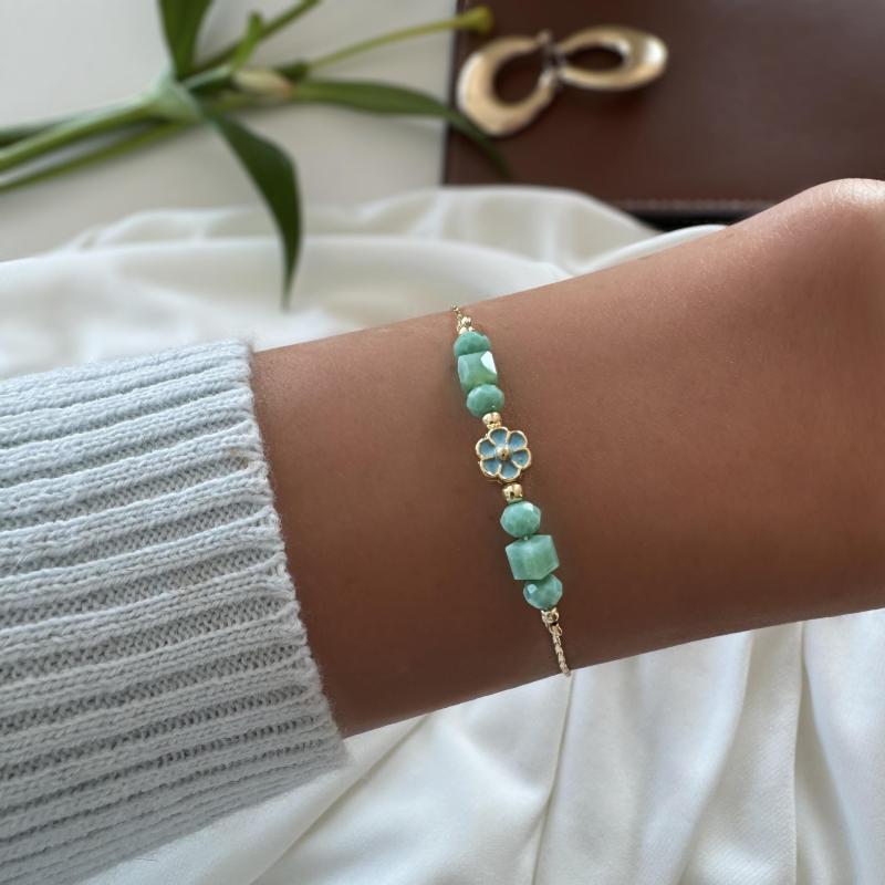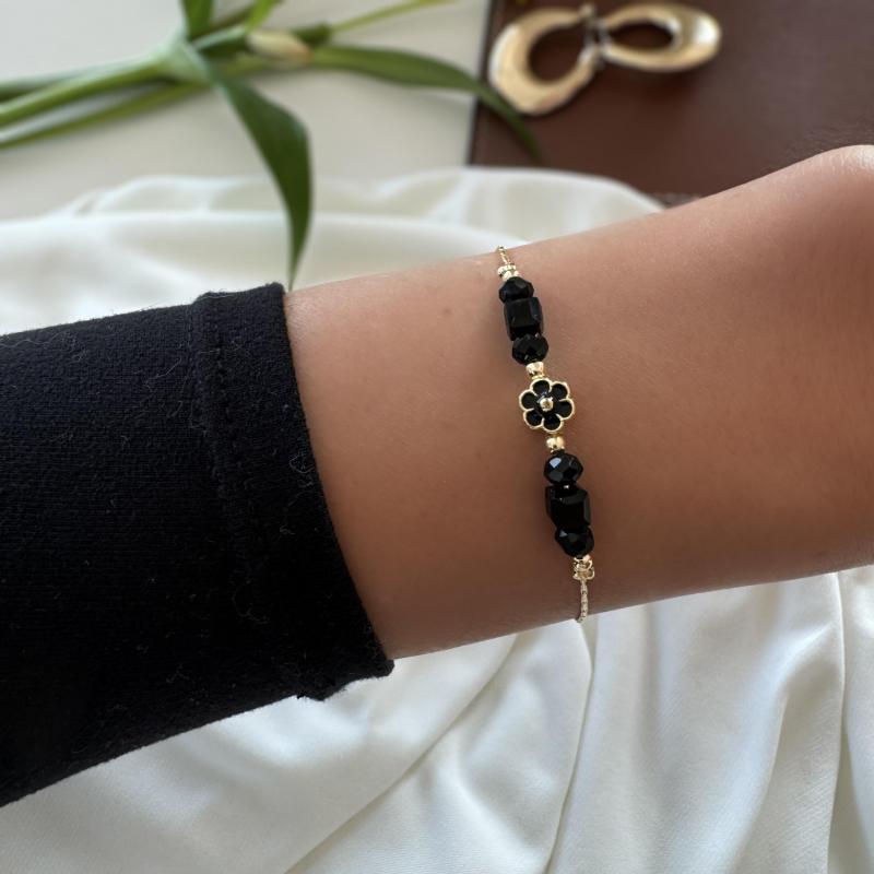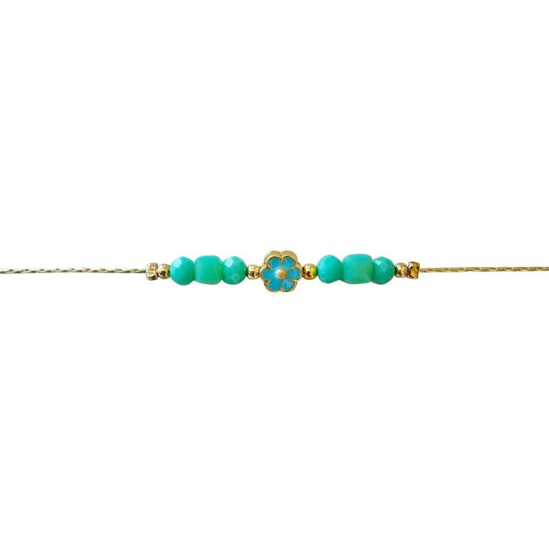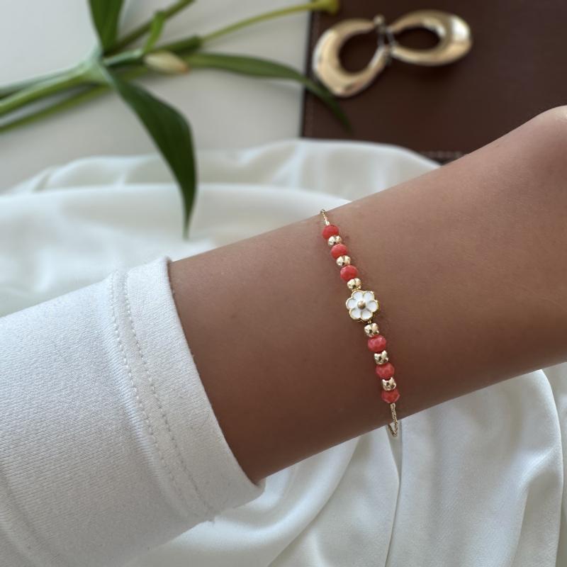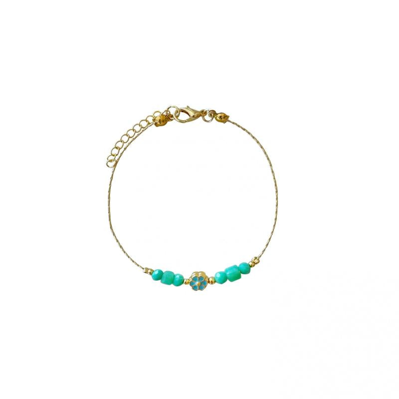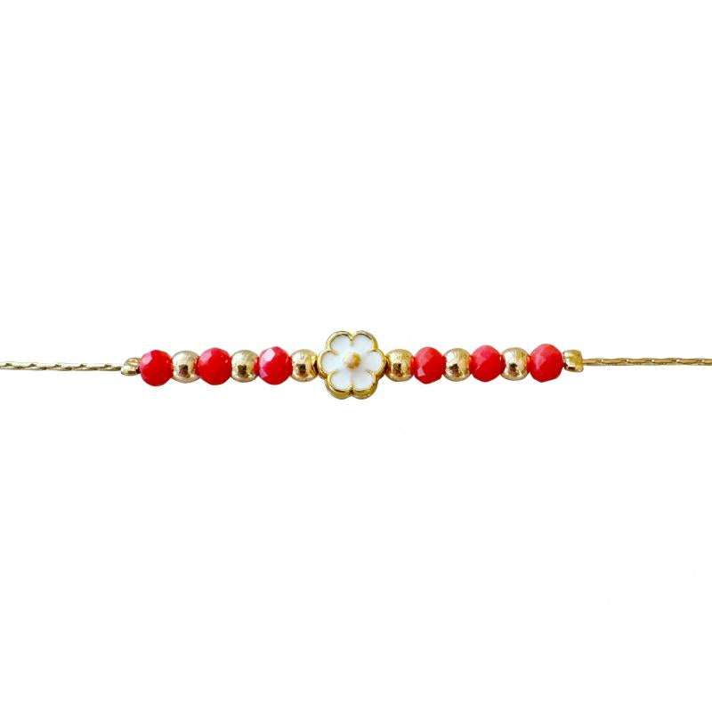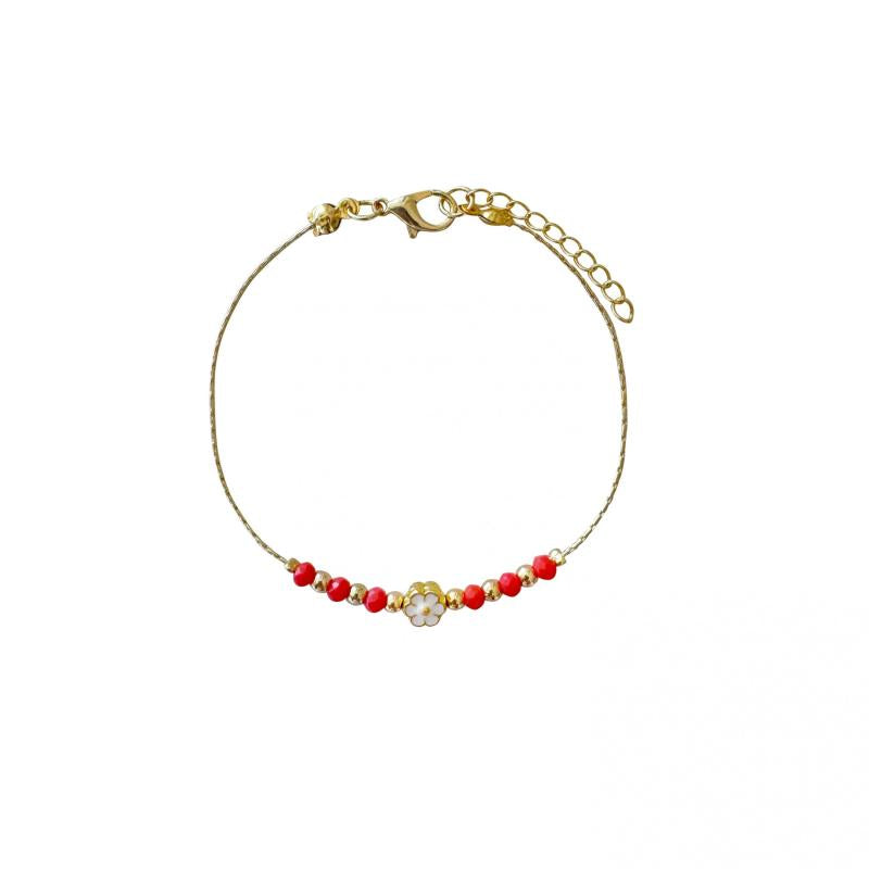 Beautiful beaded bracelet with charming flower charm, plated with a delicate finish.