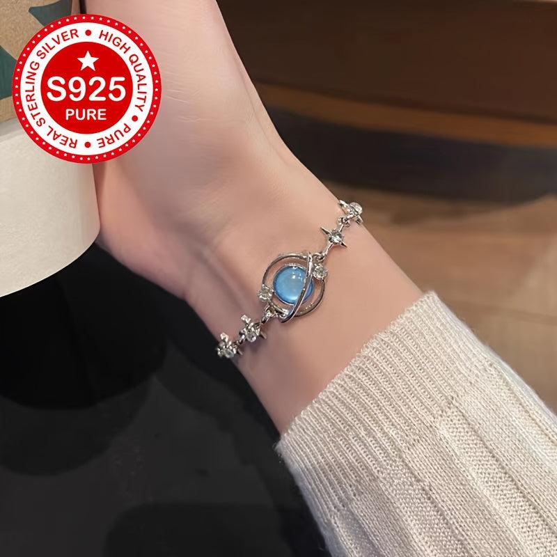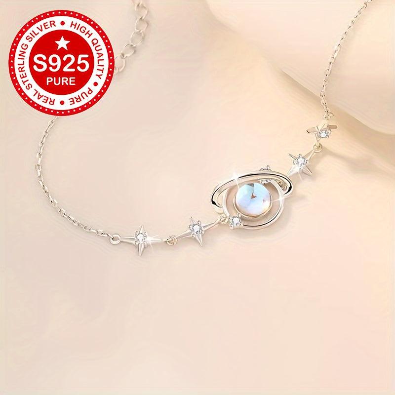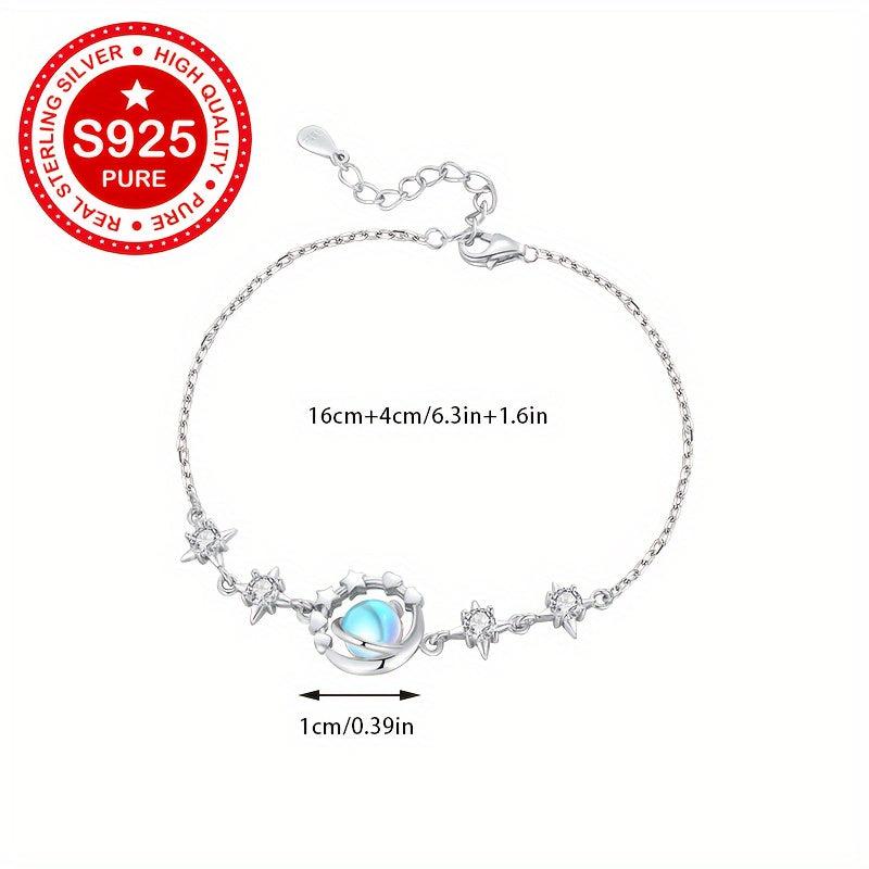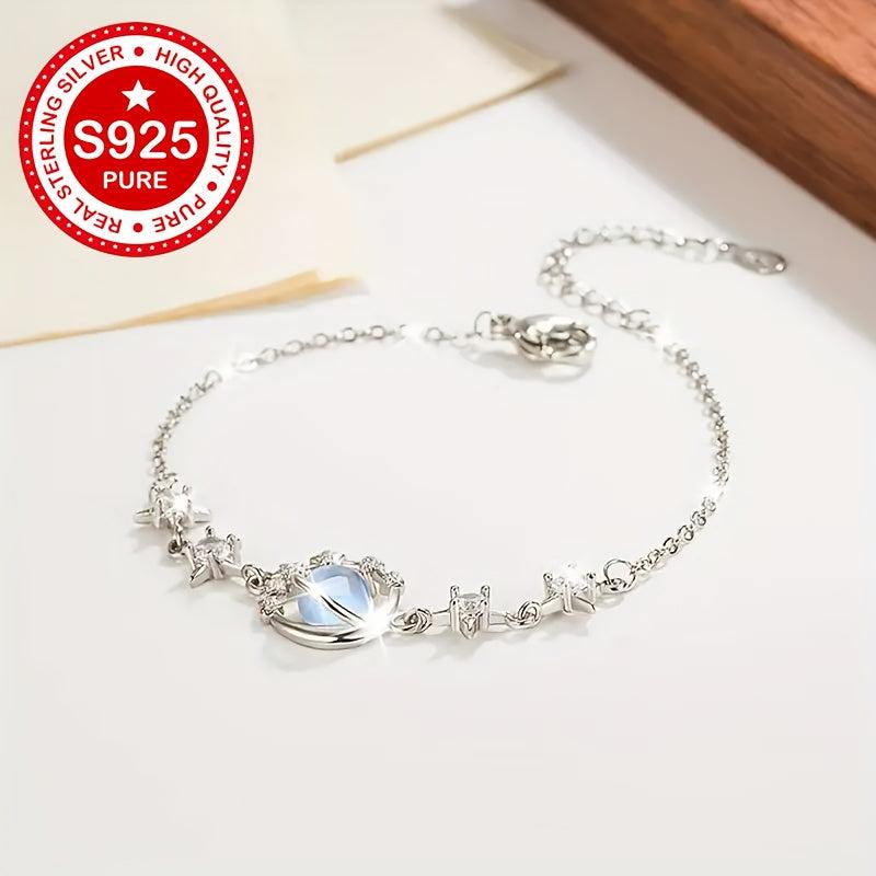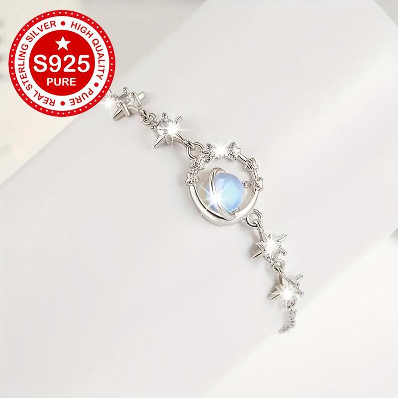 Elegant S925 silver bracelet with moonstone inlays, perfect gift for girlfriend, minimalist design