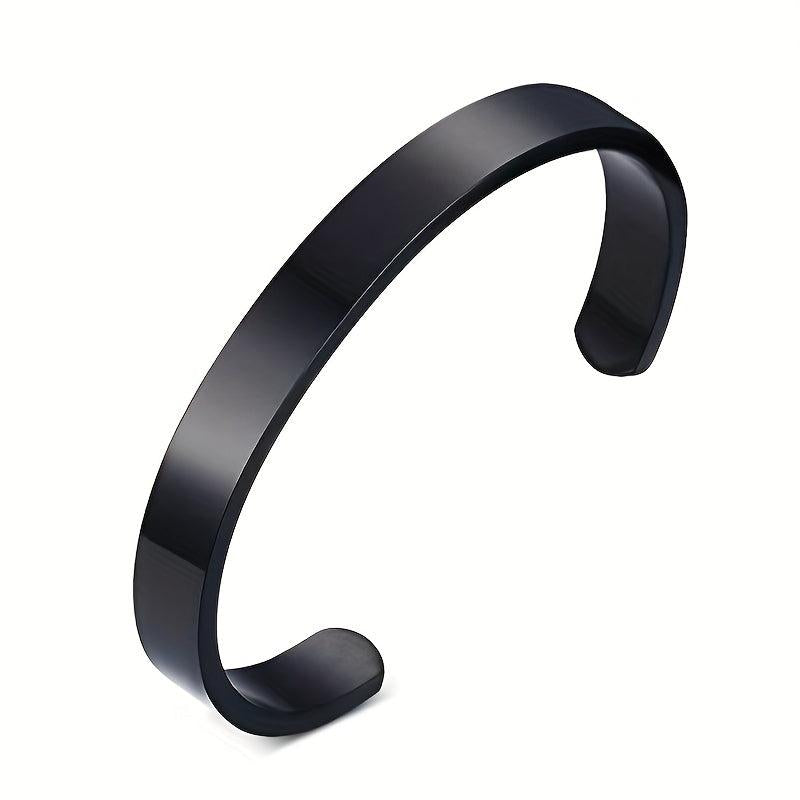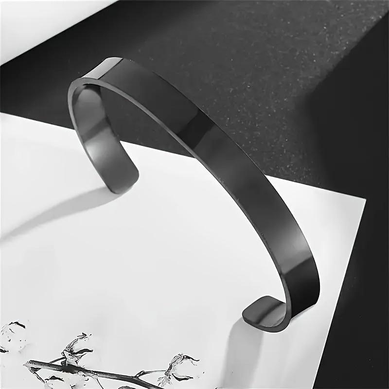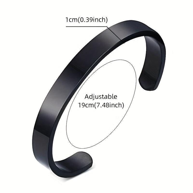 This fashionable cuff bracelet is made of high-quality stainless steel and features a polished finish. It is adjustable and perfect for everyday wear.