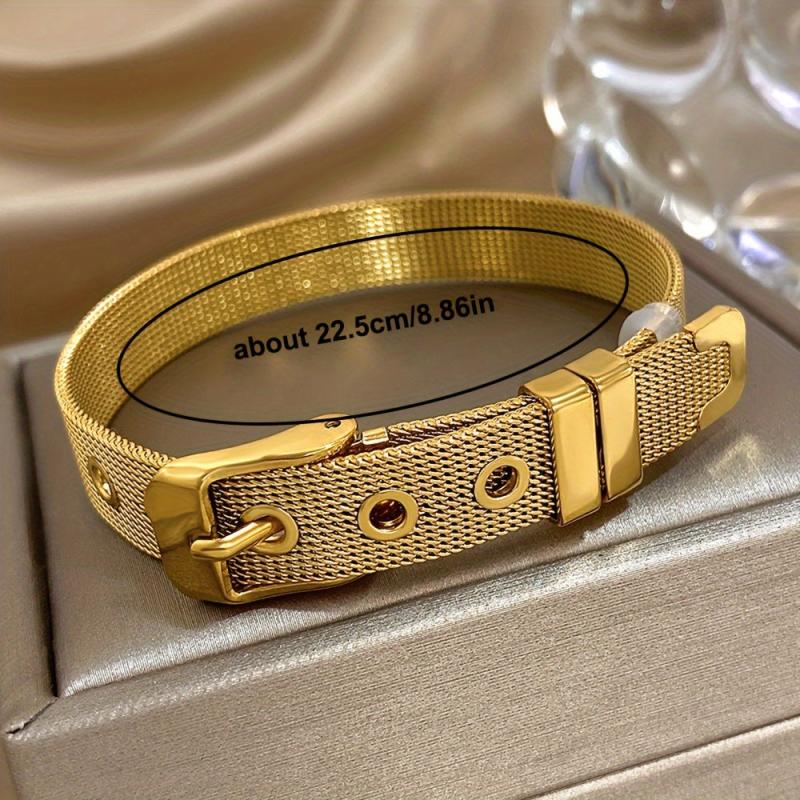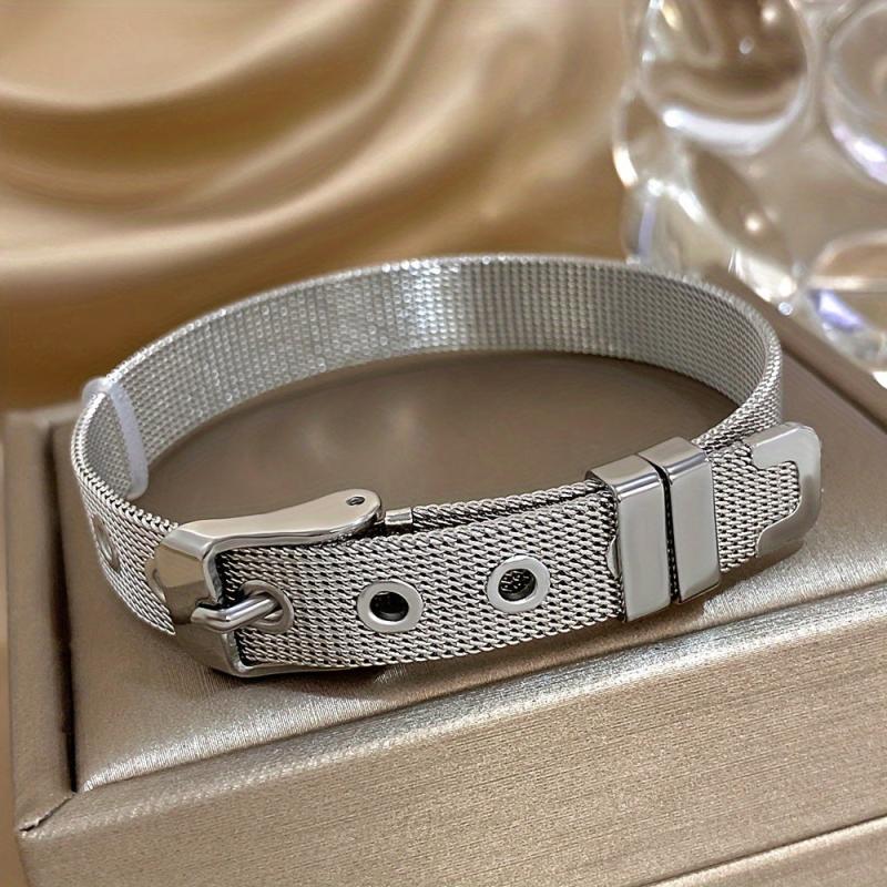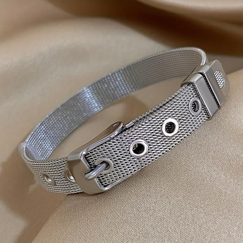 This retro punk stainless steel belt shaped bracelet charm bangle is versatile for daily wear. No gem inlay adds a minimalist touch to your style.