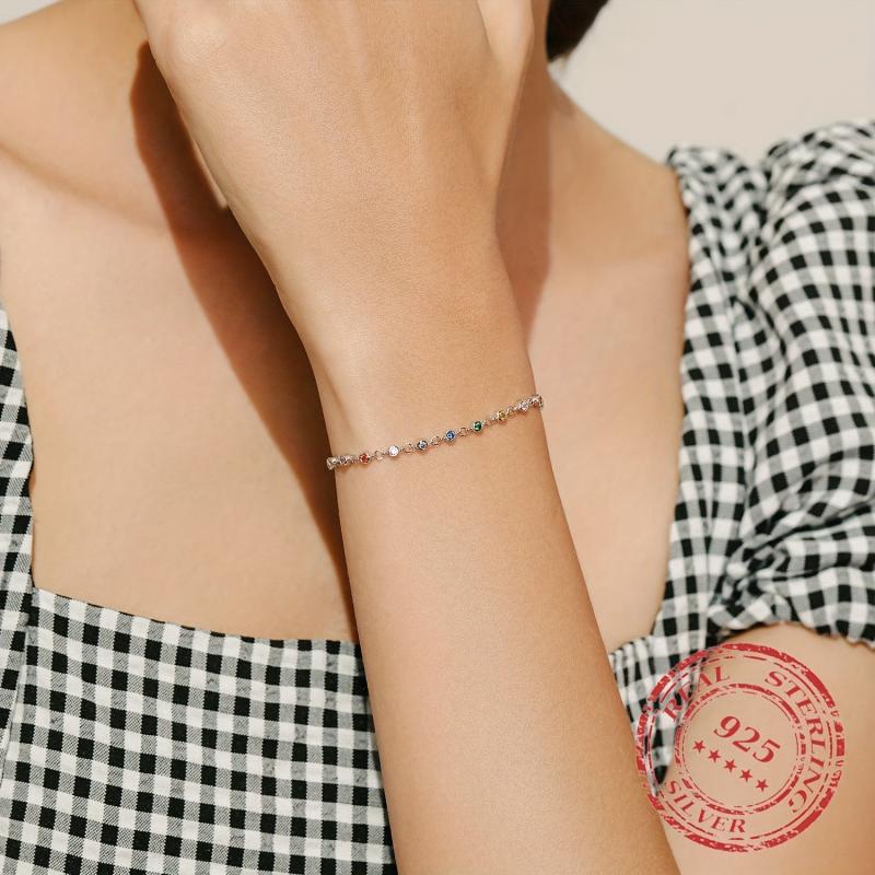 Add a pop of color to your outfit with this stunning Rainbow CZ charm bracelet. Made of 925 sterling silver, this Bohemia style bracelet is a must-have accessory for women.