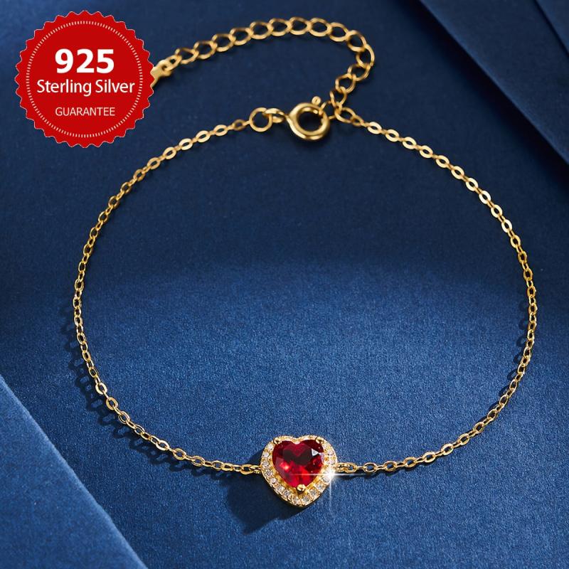 This elegant red heart bracelet is made of 925 sterling silver, perfect for weddings, parties, and dates.