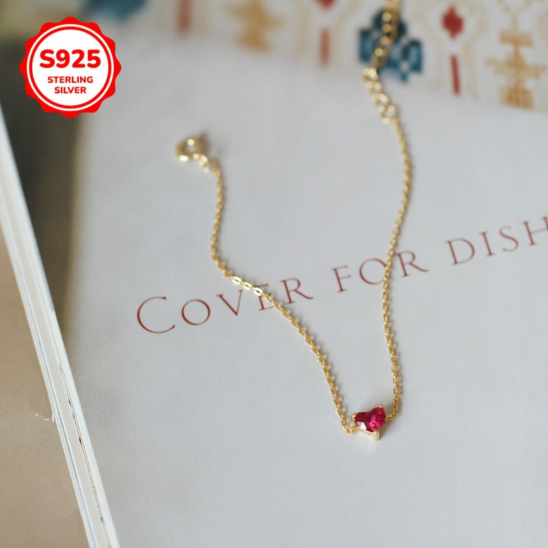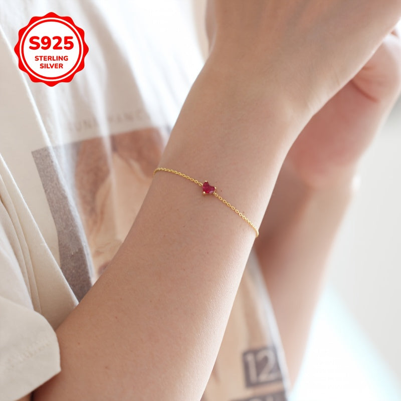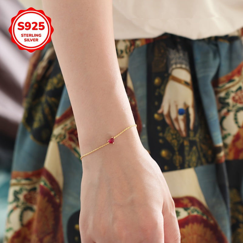 This stunning bracelet features a red synthetic zirconia stone set in high-quality S925 sterling silver. A versatile accessory that is perfect for everyday wear or as a thoughtful gift for your girlfriend.