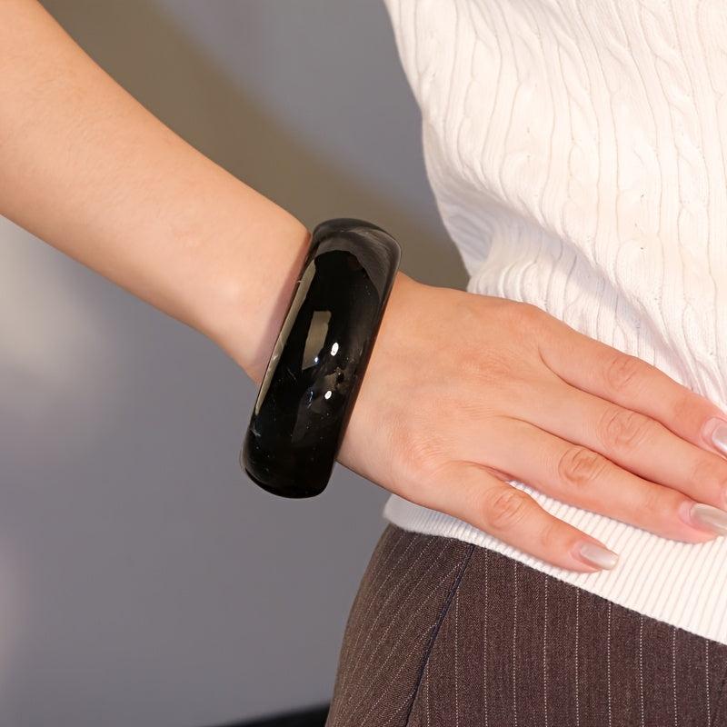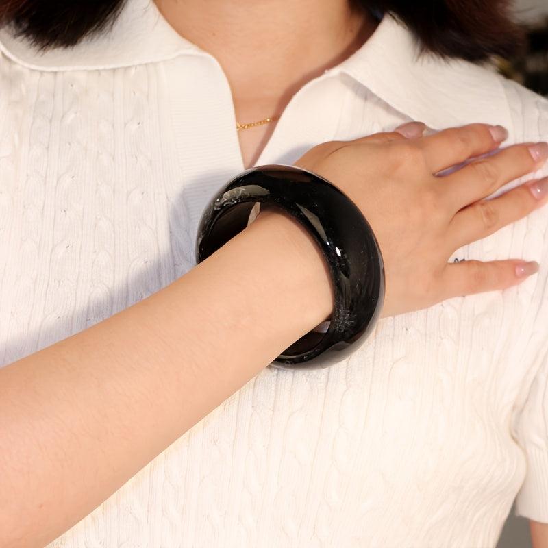 This resin bangle bracelet is perfect for daily wear or gifting. Its stylish round design adds a touch of elegance to any outfit. A great minimalist accessory that complements any look.