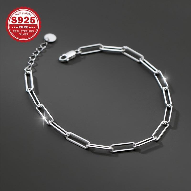 This retro square bracelet is made of pure S925 silvery material with a hip hop style, perfect for sports and daily wear. It is low allergy and lightweight at 4.2g.