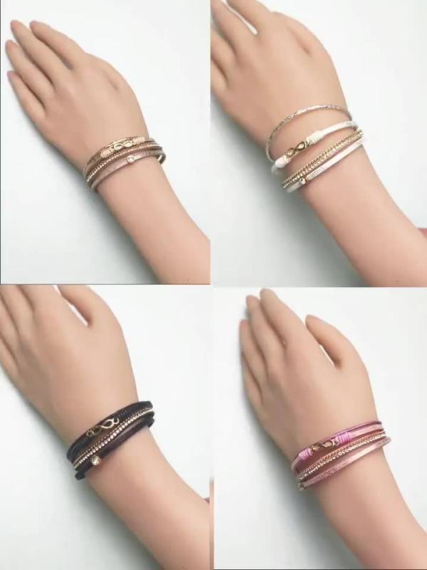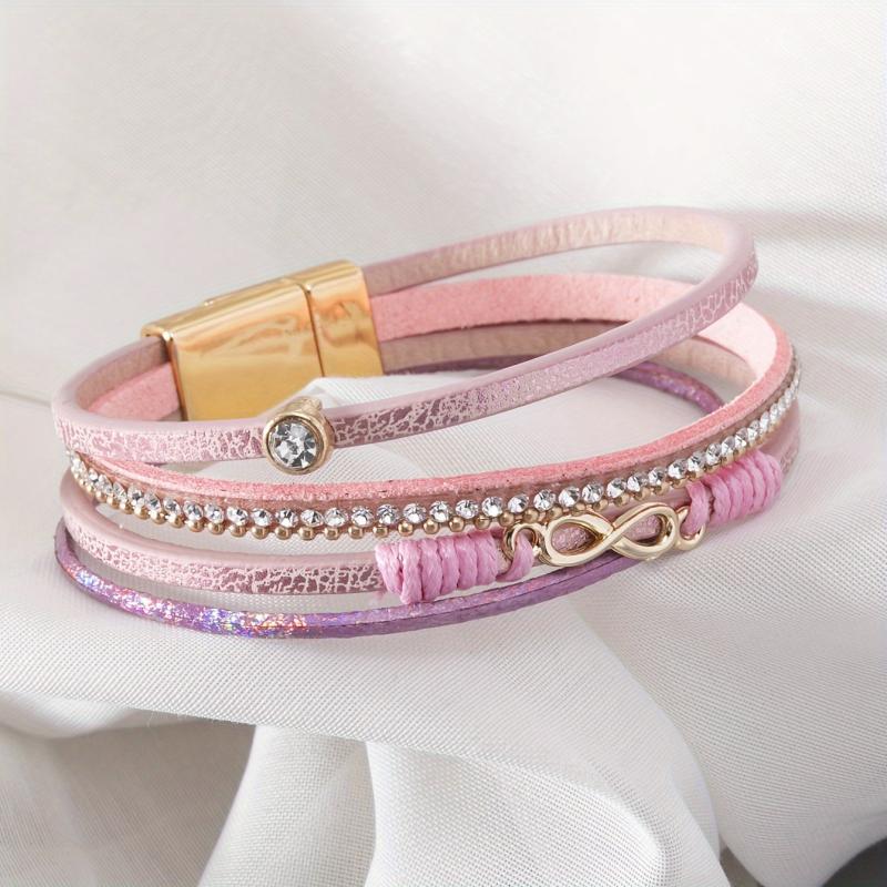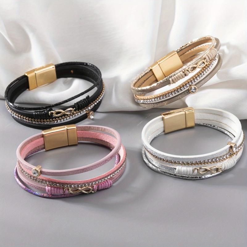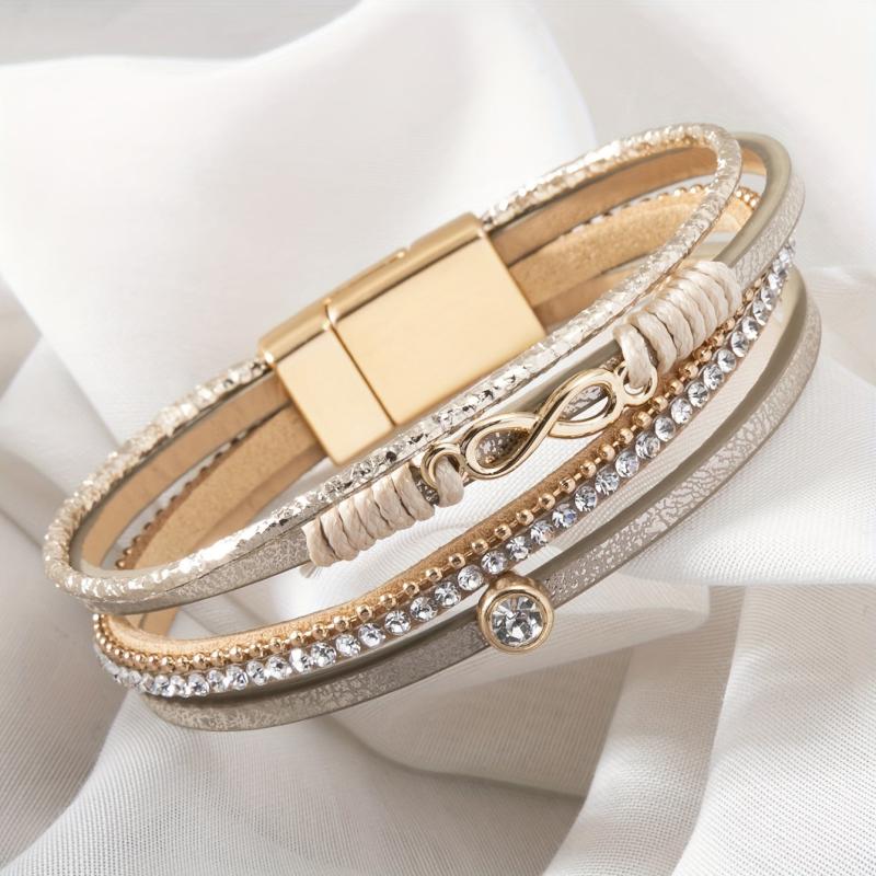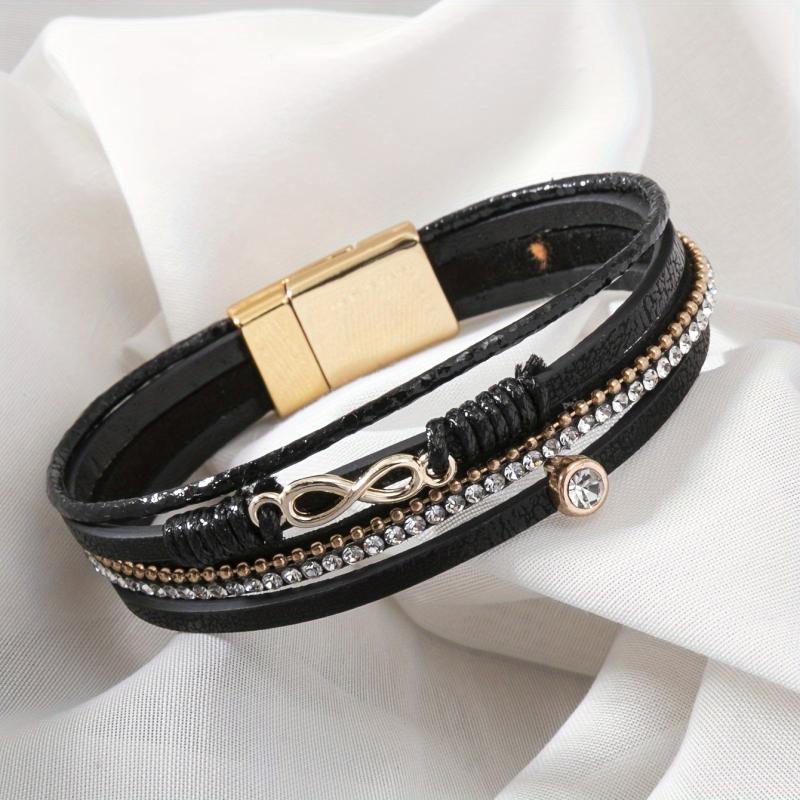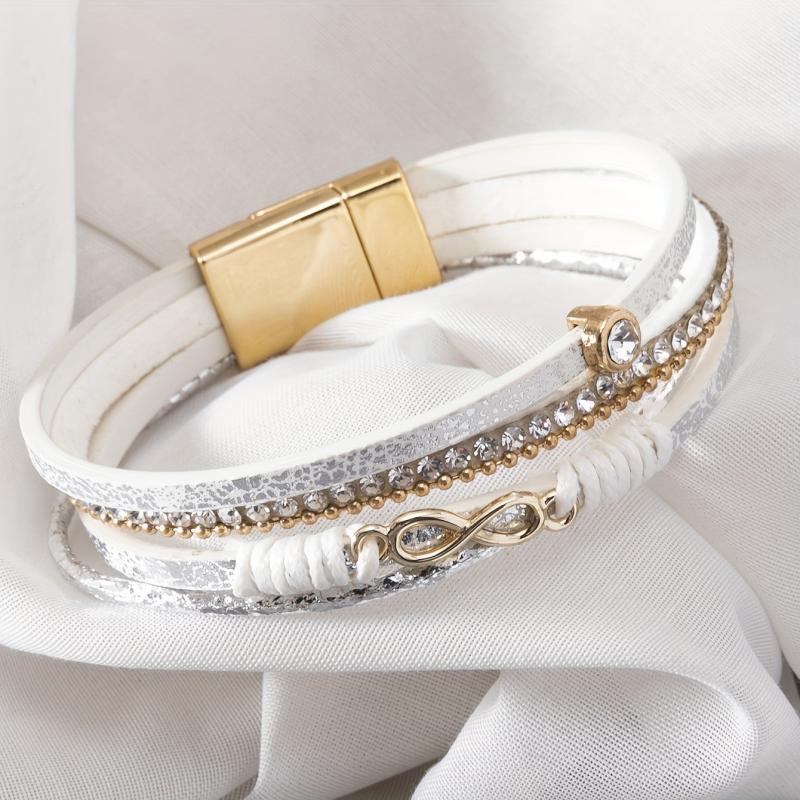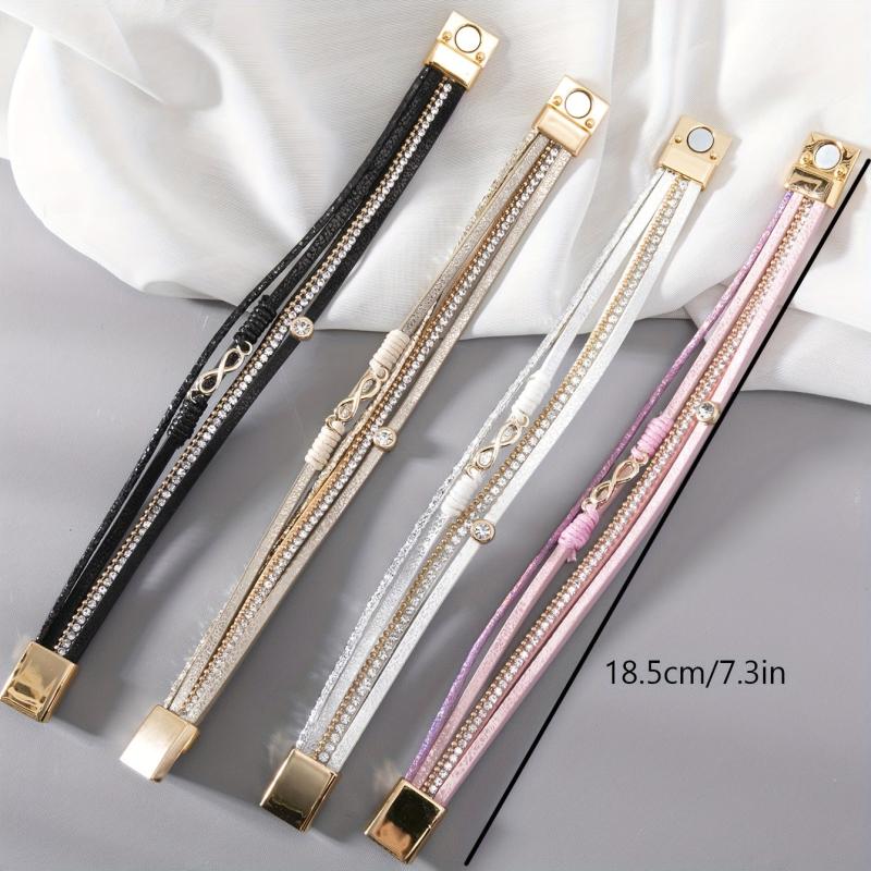 Elegantly crafted rhinestone strand braided wrap bracelet featuring a magnetic clasp for easy wear.