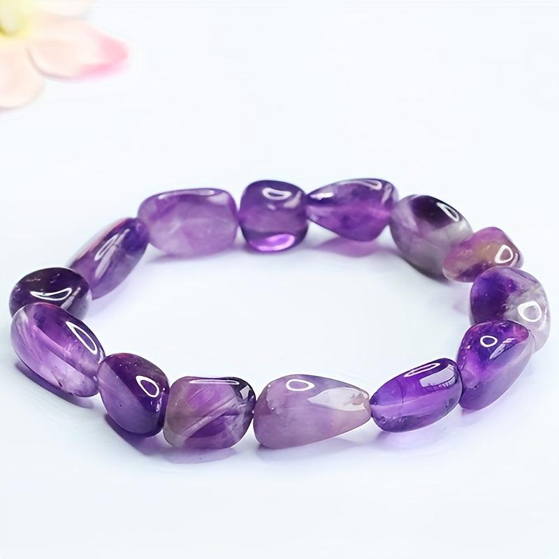 Embrace the romantic destiny with this natural amethyst hand chain. The purple amethyst stones are irregular in shape, bringing luck and charm to your style.