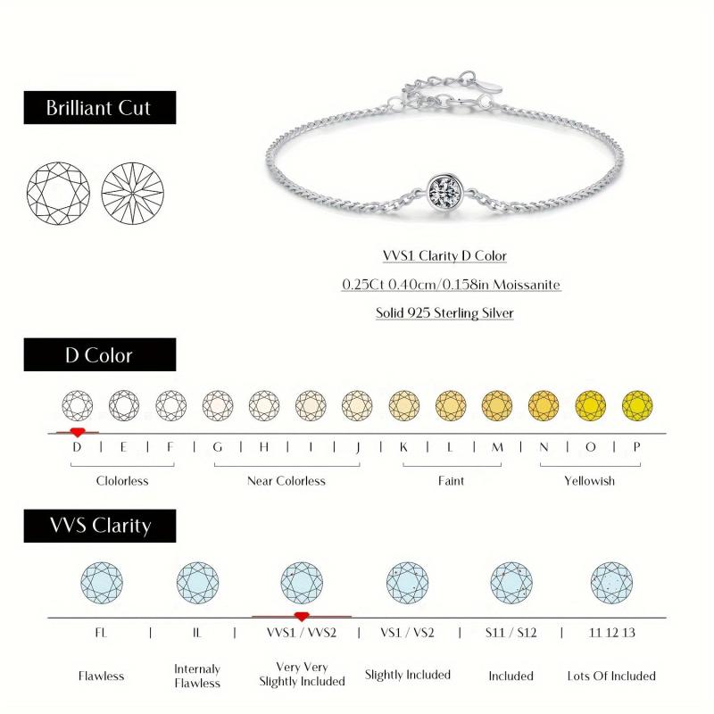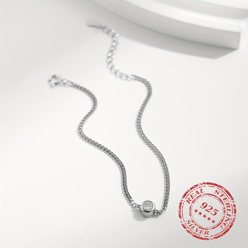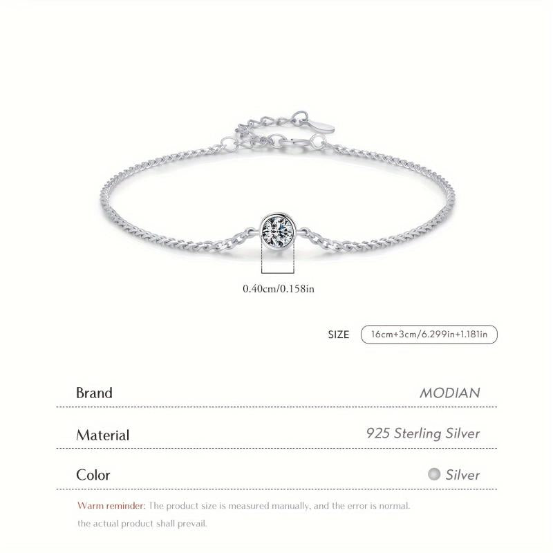 Elegant and timeless, this classic round solitaire moissanite bracelet is perfect for wedding season. Made with a 925 sterling silver chain, this lightweight and versatile jewelry piece is a must-have for any occasion.