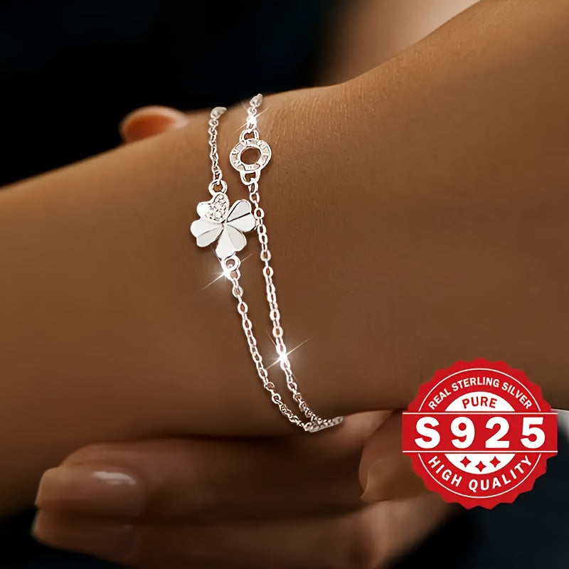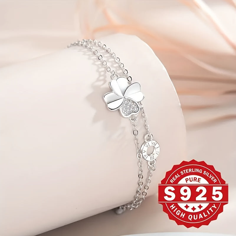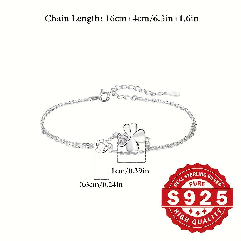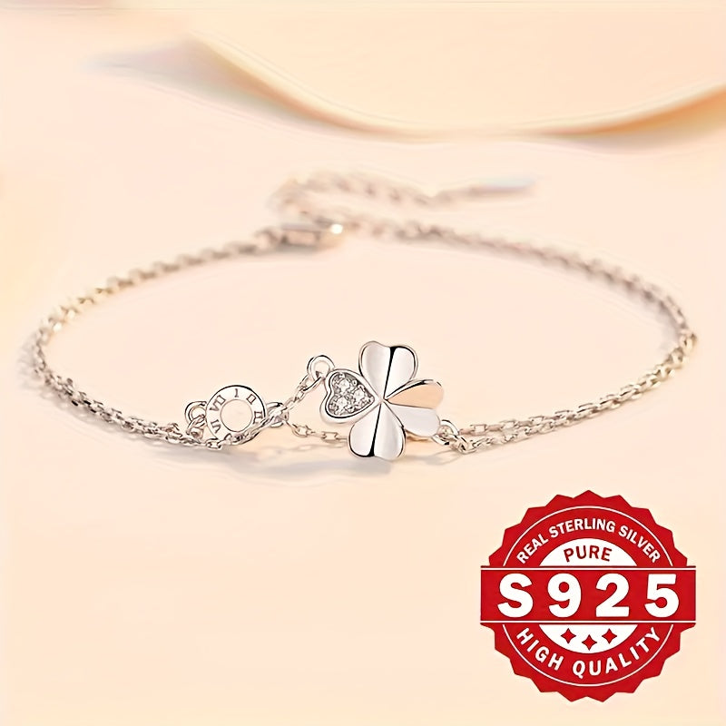 This S925 silver bracelet features a delicate four petal flower design that exudes elegance and charm. It is versatile, light, and perfect for daily wear or special occasions. Ideal for Christmas gifting.
