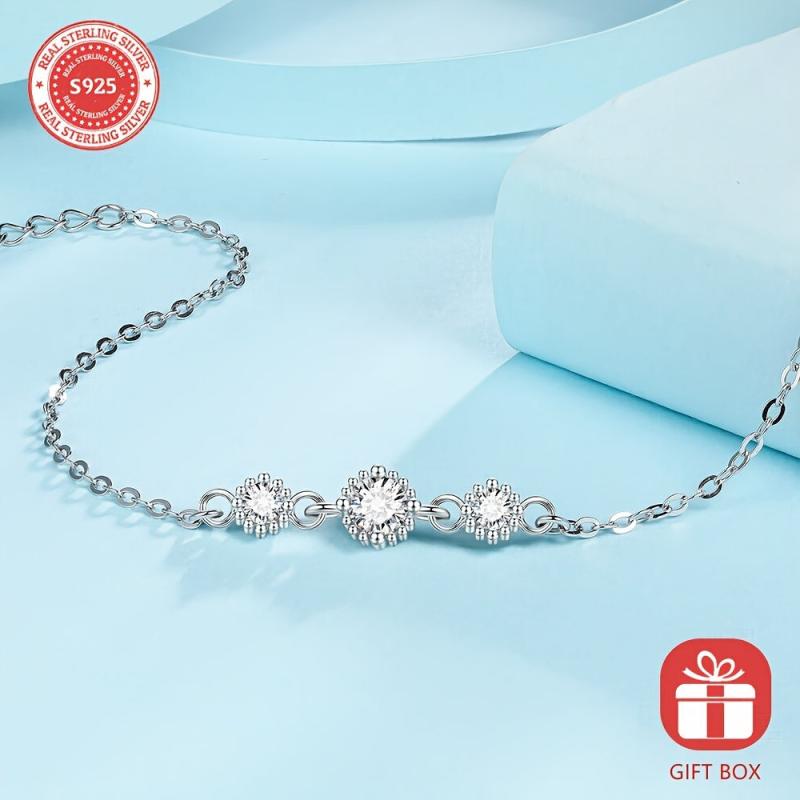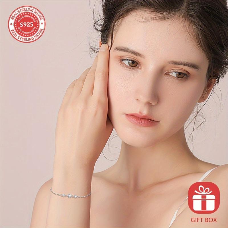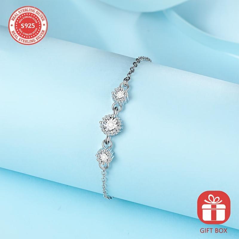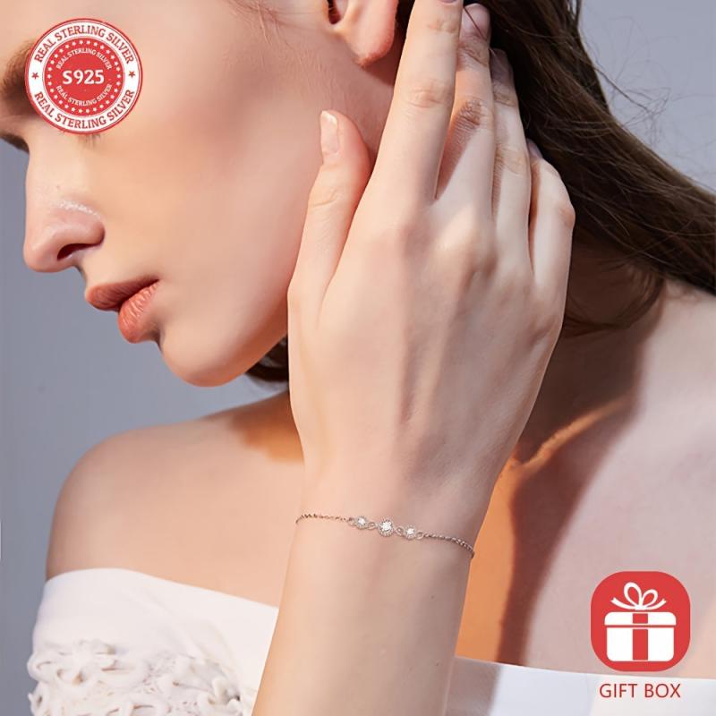 This classic S925 sterling silver bracelet is a perfect gift for birthdays, anniversaries, or any special occasion. The bracelet features a shining love design and comes with a beautiful jewelry box.