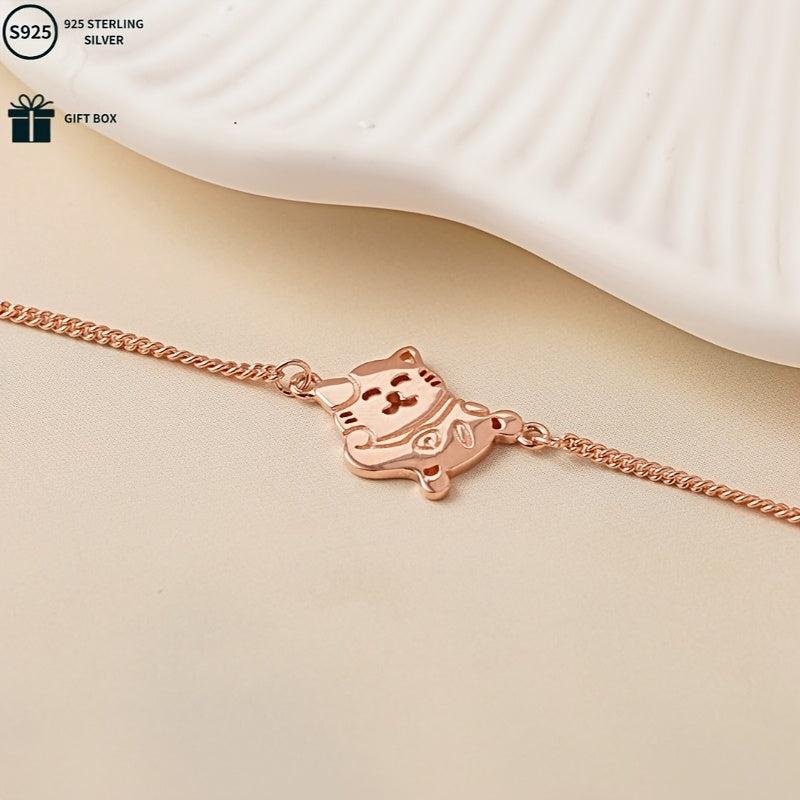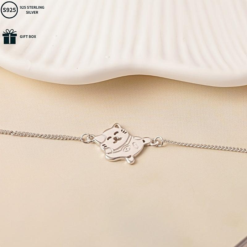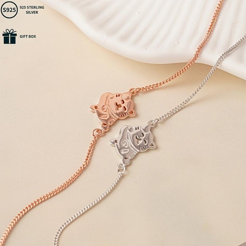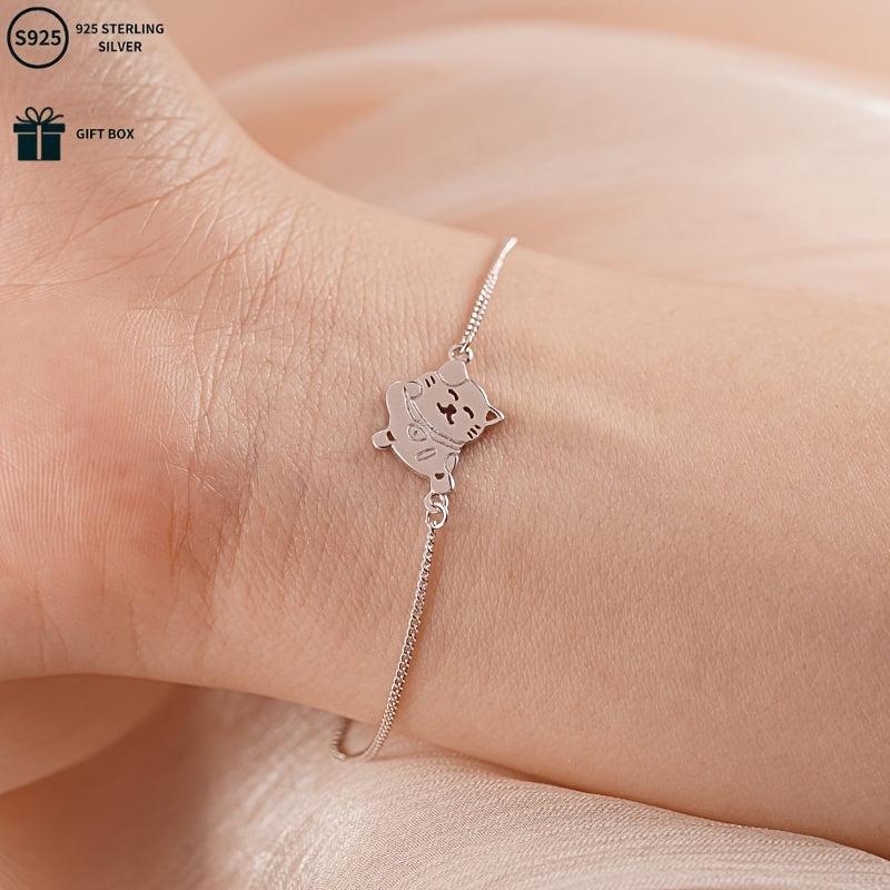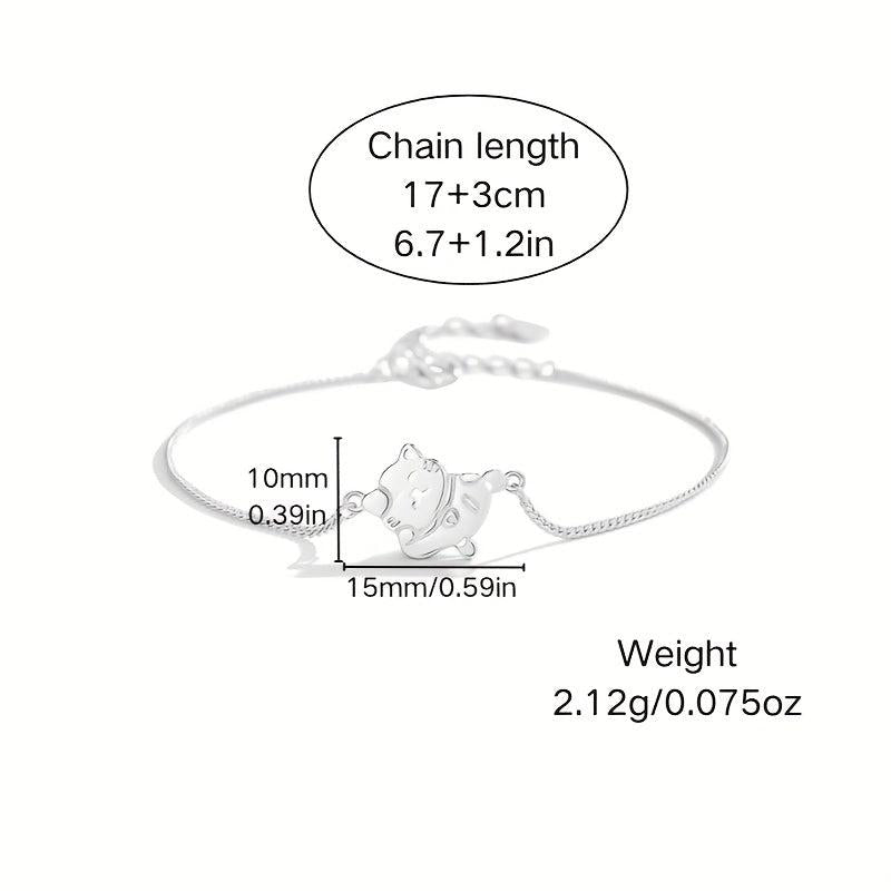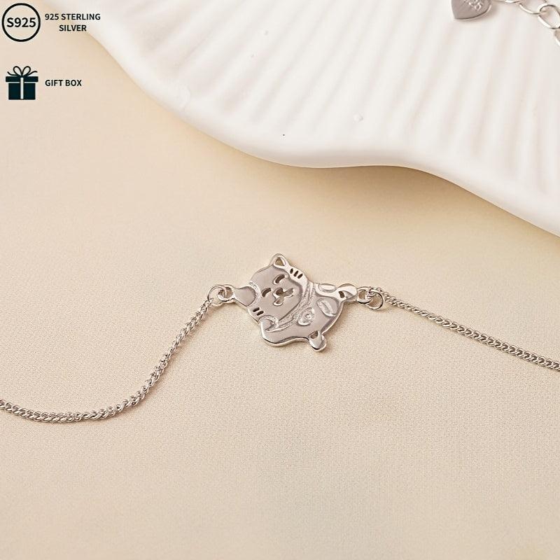 This adorable S925 pure silvery lucky cat bracelet is a versatile accessory perfect for daily wear, celebrations, parties, and banquets. It makes a great gift for mothers.