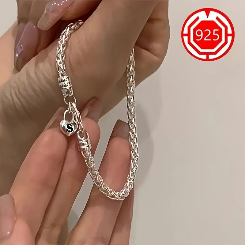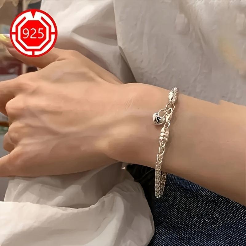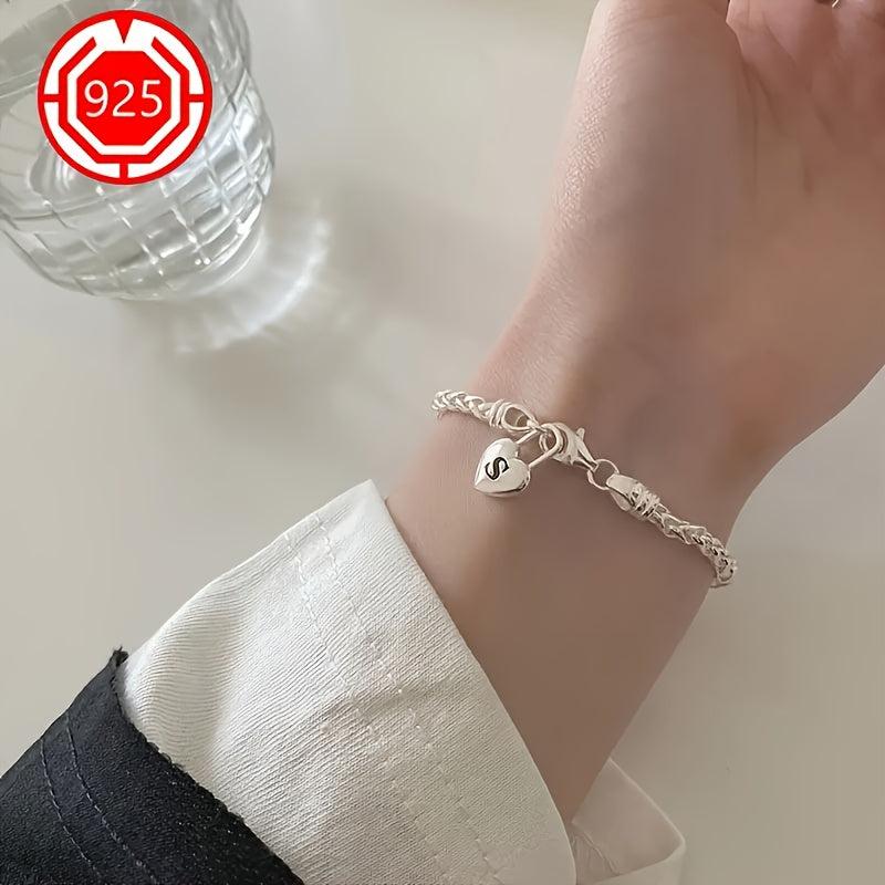 This S925 silvery heart lock pendant bracelet is a delicate piece of jewelry perfect for casual attire. It is suitable for both men and women.