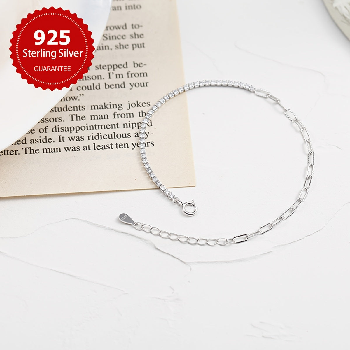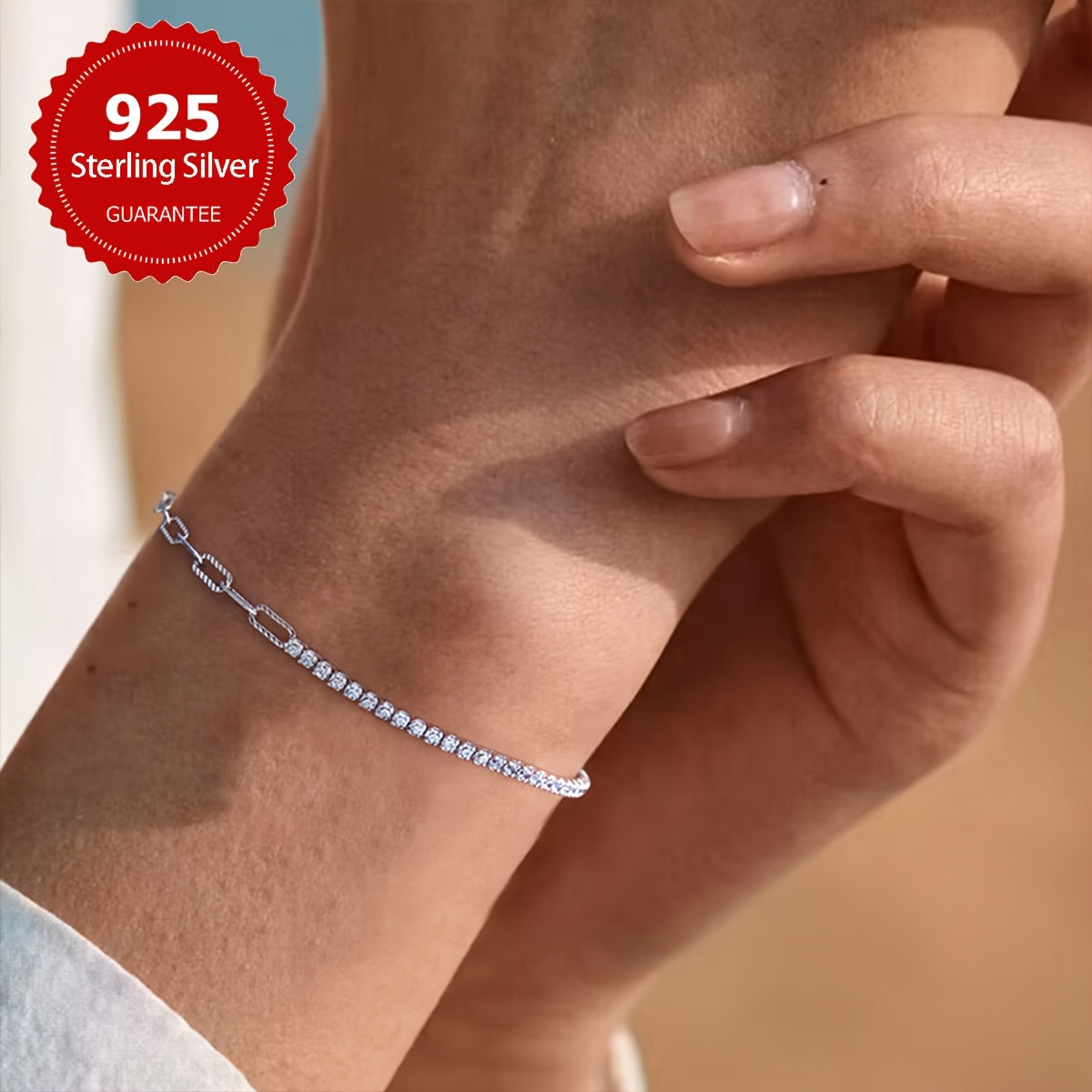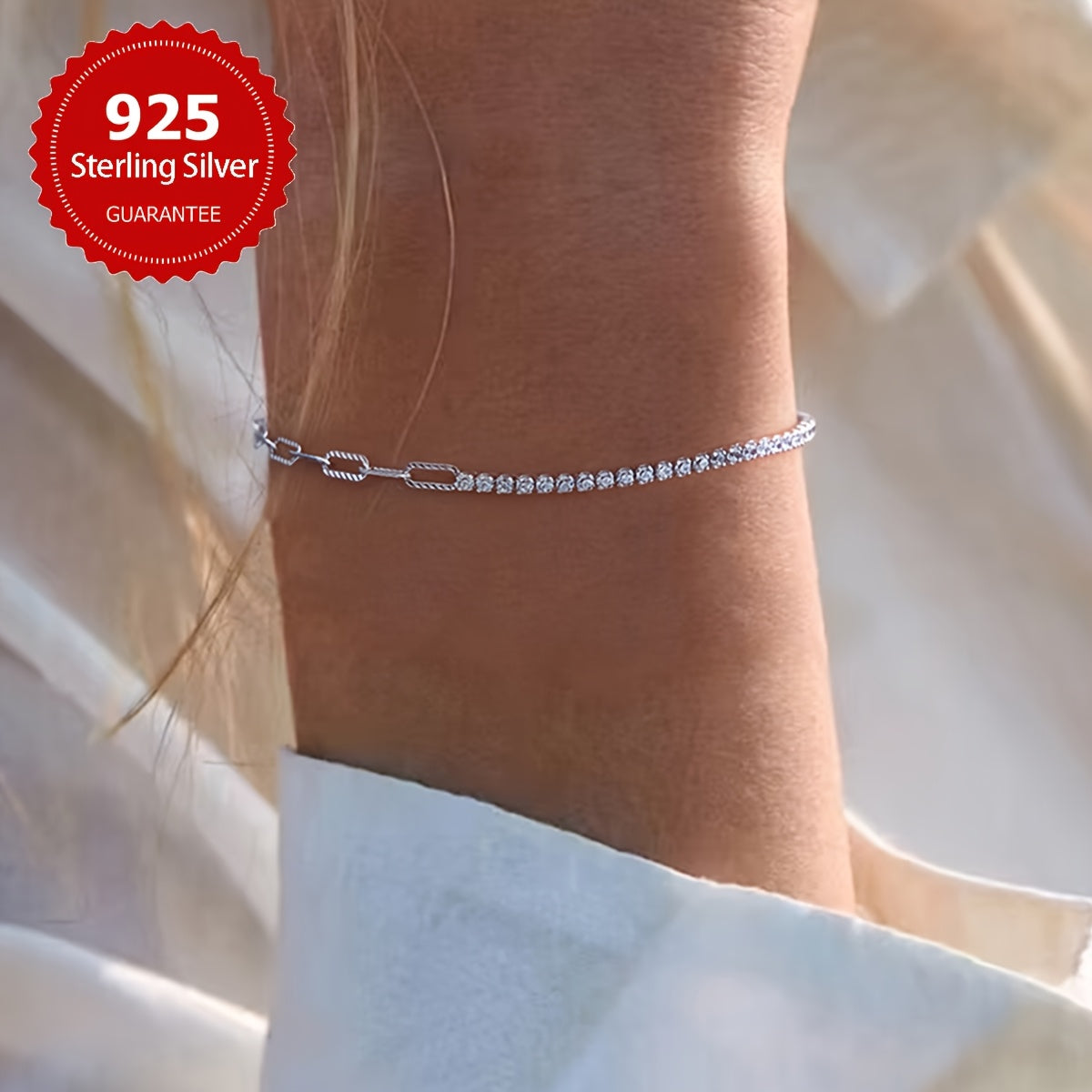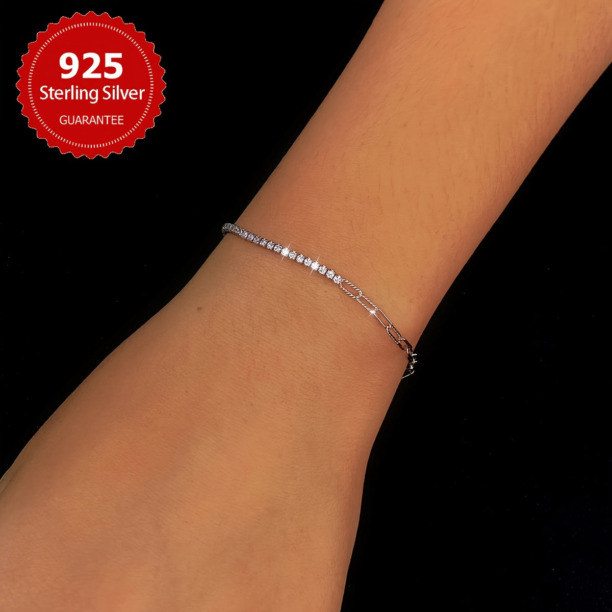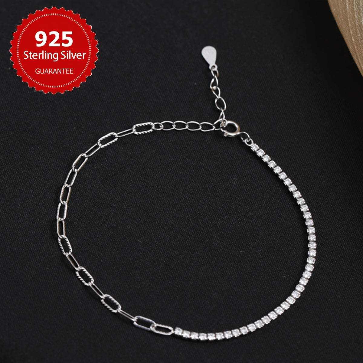 Elegant and high-quality S925 pure silvery chain bracelet with an asymmetrical hand ornament. Perfect for daily wear or as a thoughtful gift.
