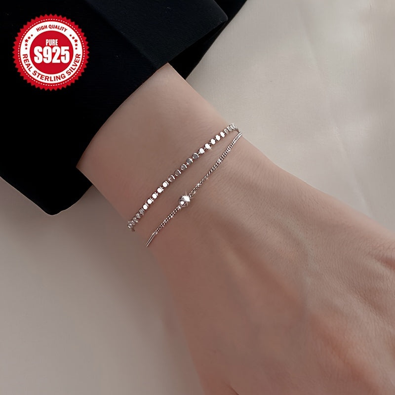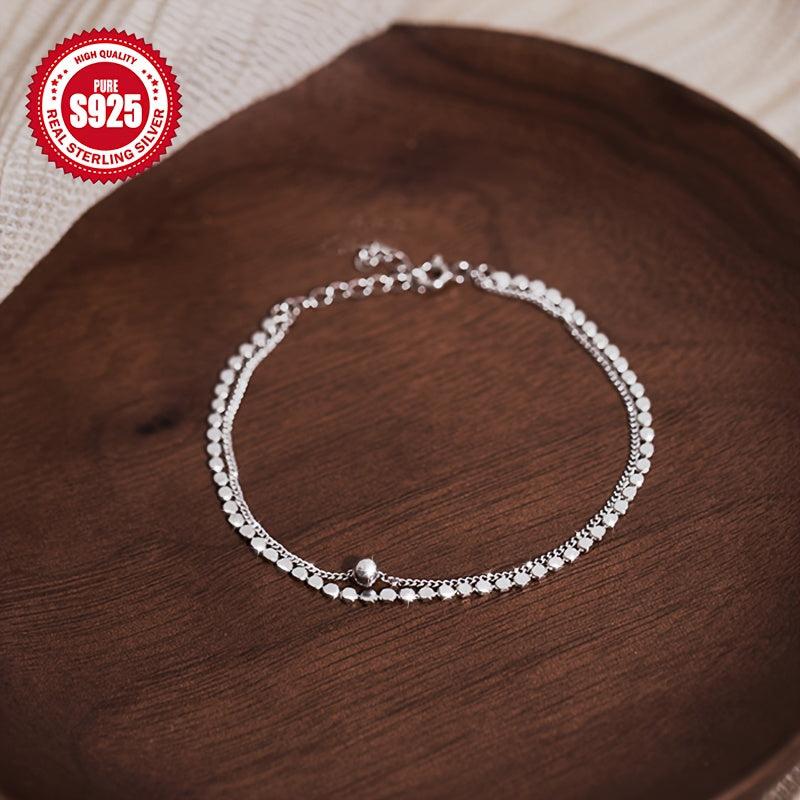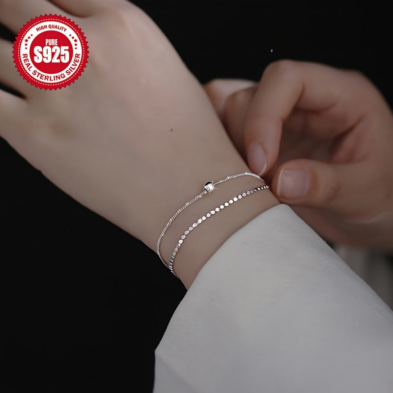 Elegant and versatile, this S925 pure silver bracelet features a double layered design with round disc charms. Perfect for Christmas and Valentine's Day, it offers a high-end feel and lightweight comfort.