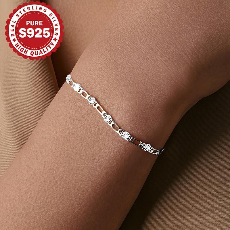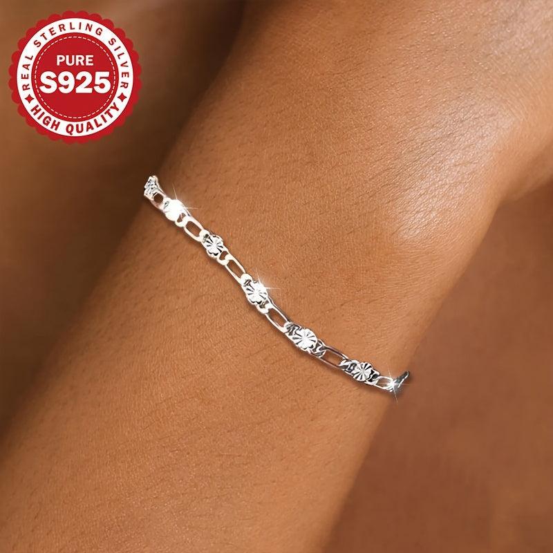 This stunning hip hop bracelet features a flower chain design made of S925 pure silver. It makes a perfect gift for women with low allergy risks.