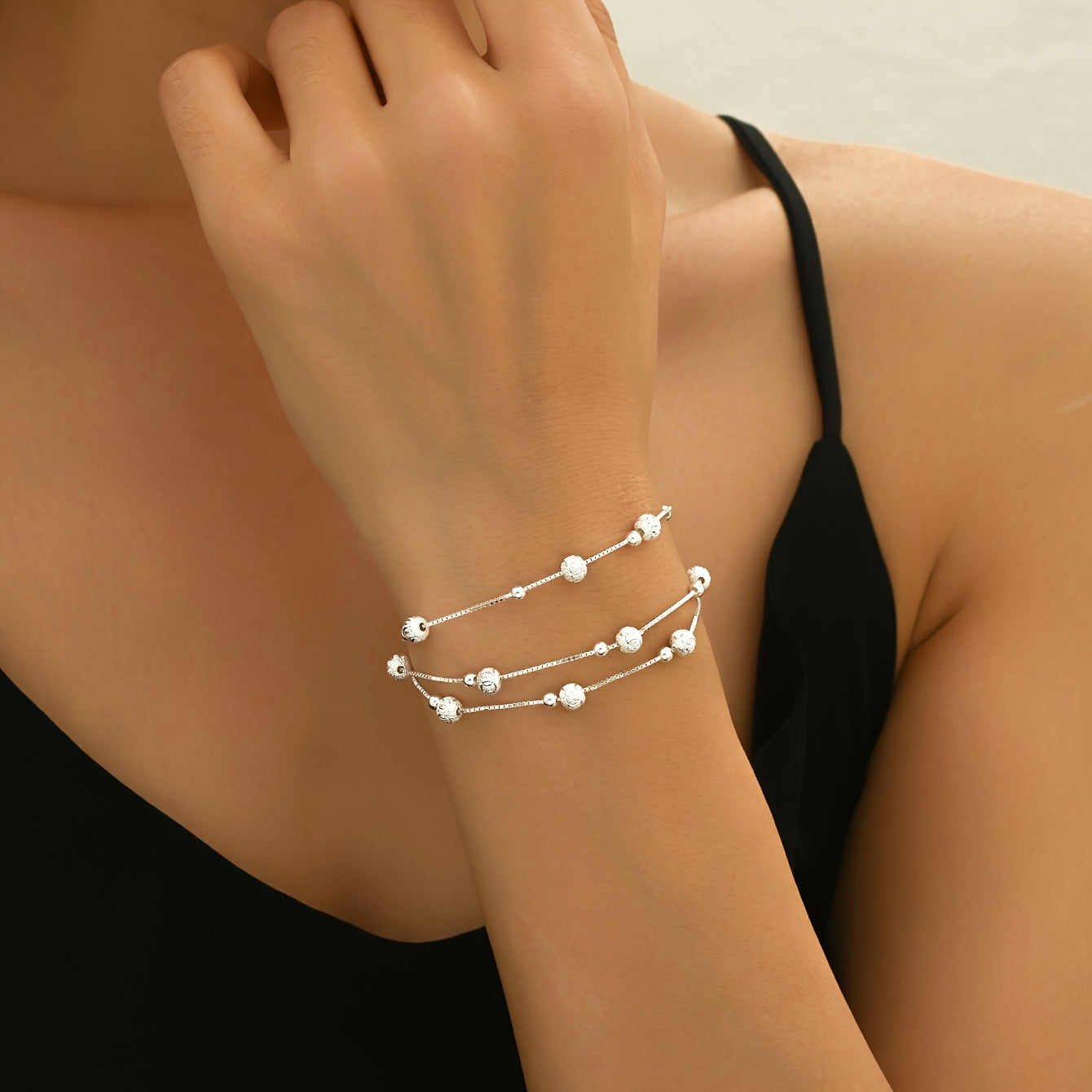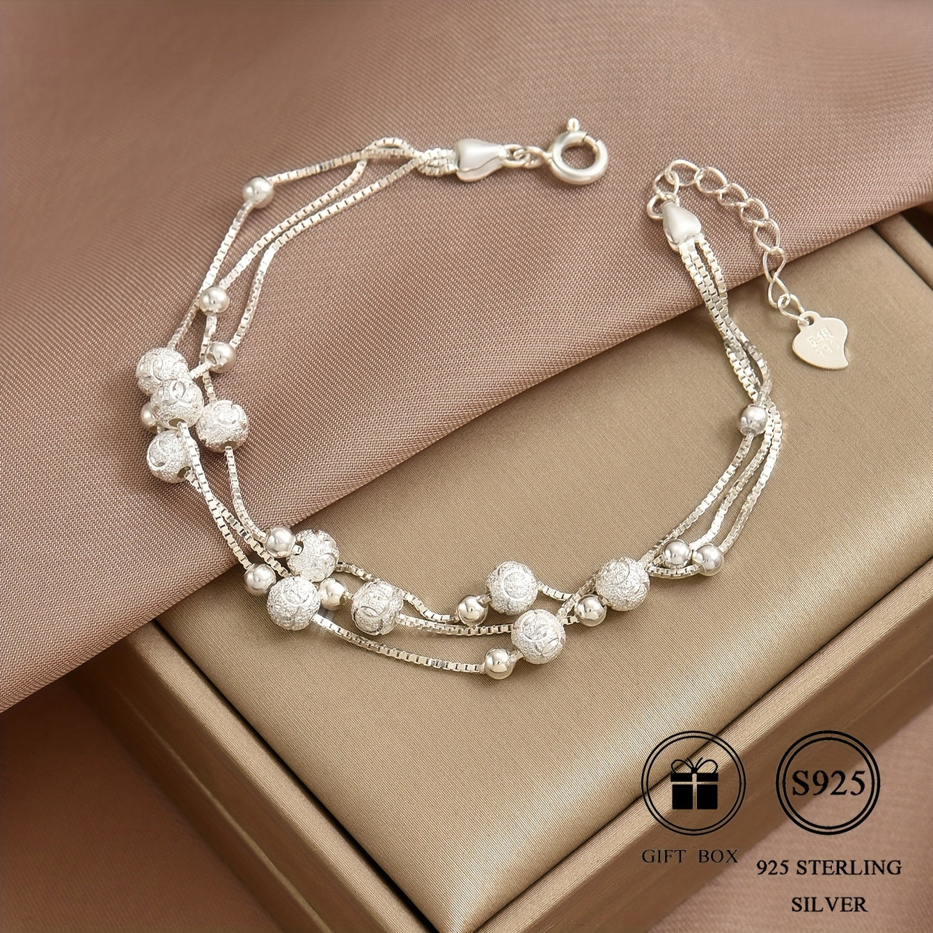 This fashionable wristband features a versatile layered design with S925 silver beads. Total weight of 4.65g makes it a chic accessory.