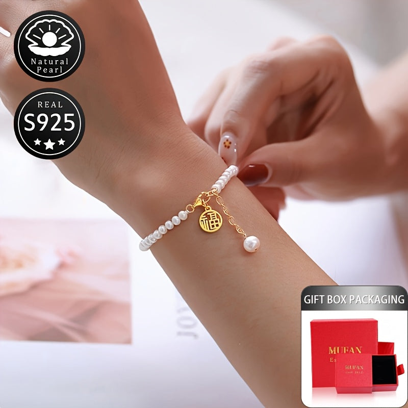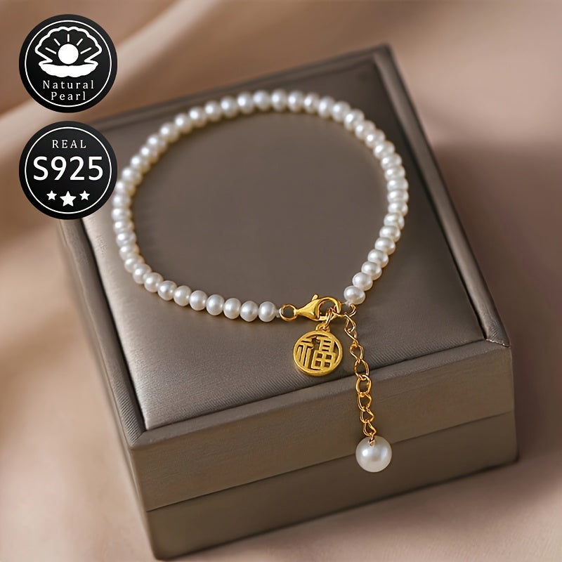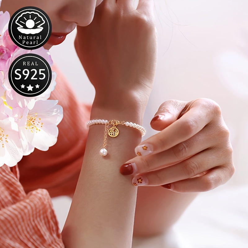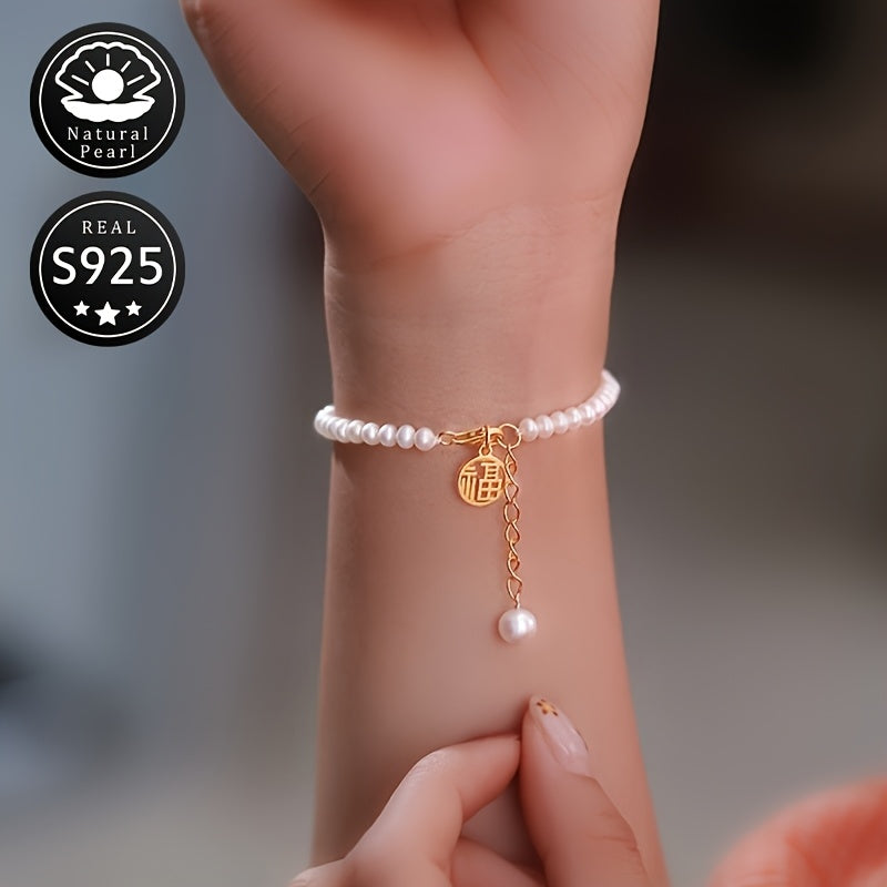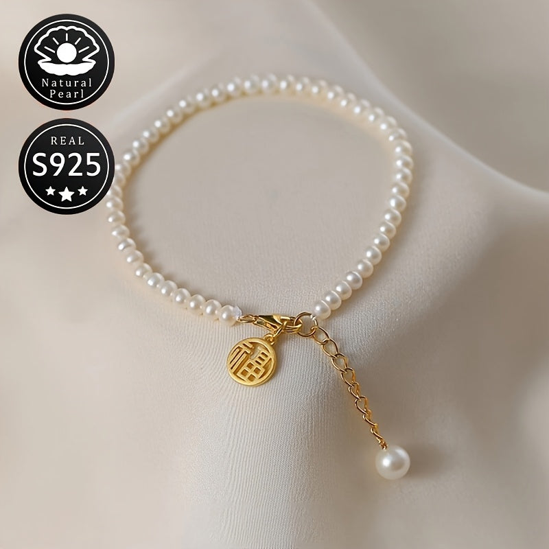 Elegant S925 silver bracelet featuring natural freshwater pearls (4-5mm) - the perfect accessory for daily wear or special occasions.
